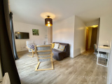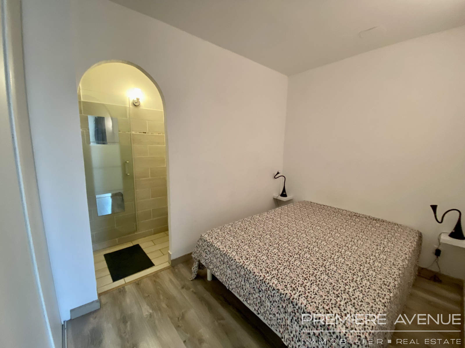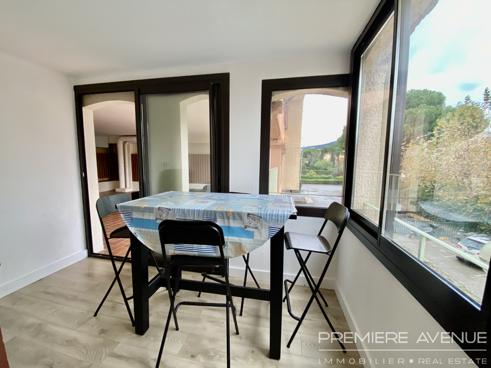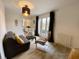 Composé d'une belle pièce à vivre, d'un coin cuisine équipée, d'une chambre avec placard et salle d'eau, d'un wc indépendant et d'une véranda servant de salle à manger.