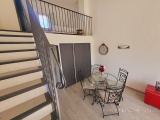 Composé d'une pièce de vie avec belle hauteur sous plafond donnant sur la terrasse, d'une cuisine, d'une salle de bains avec wc et une chambre en mezzanine.
