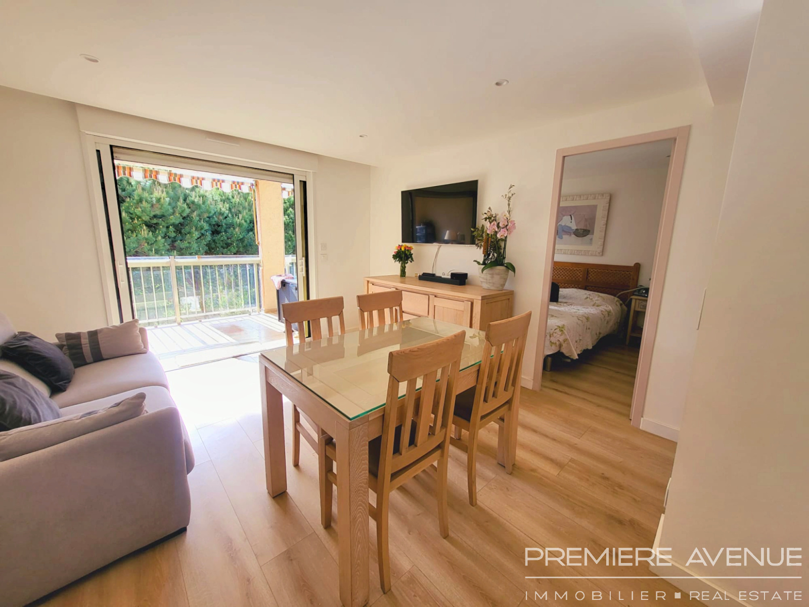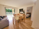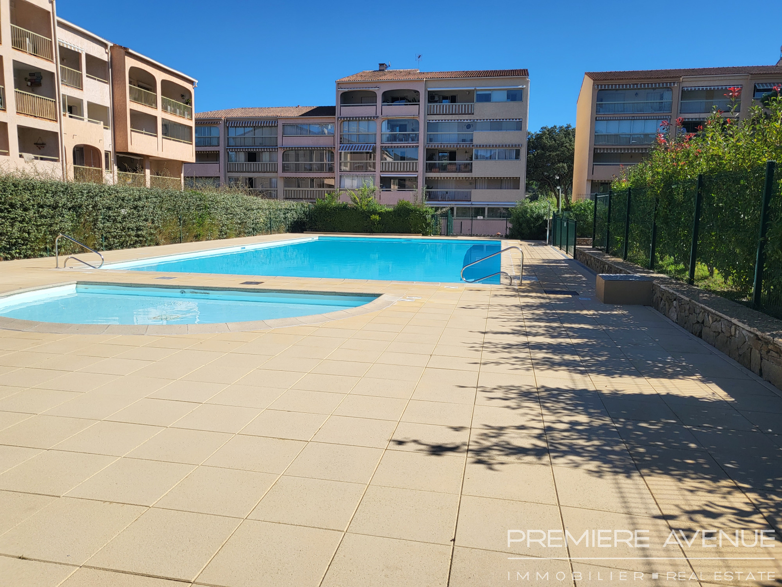 Résidence soignée en cours de ravalement située assez proche du centre-ville, dans un domaine verdoyant avec piscine.