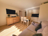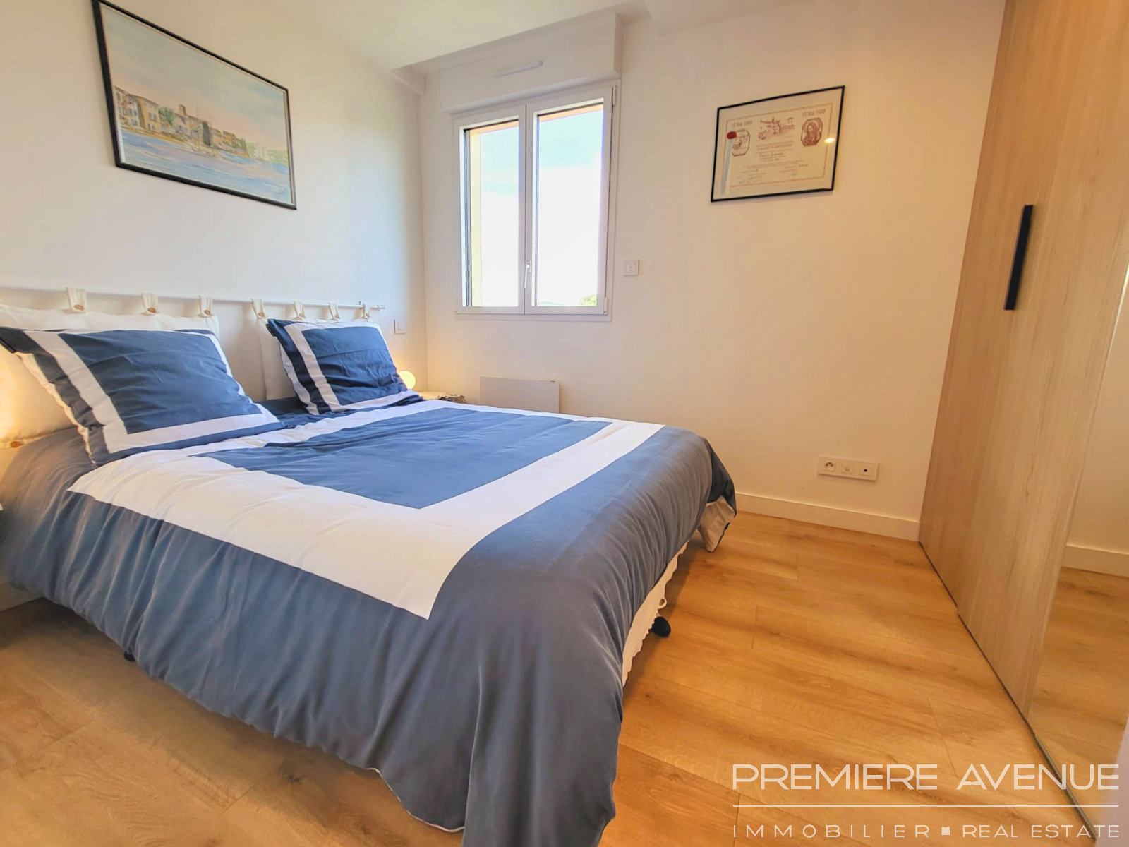Parquet au sol, faux plafonds avec spots intégrés, cuisine avec plan de travail en granit, pierre dans la salle d'eau, wc indépendants, nombreux rangements.