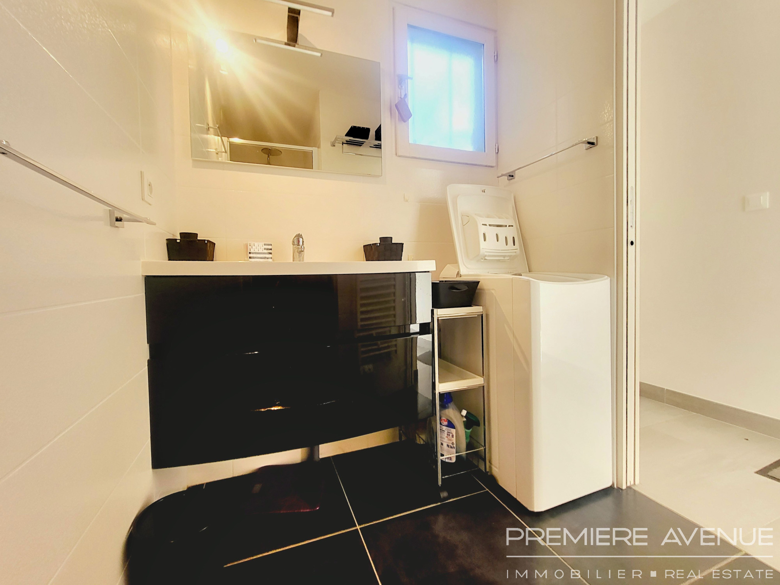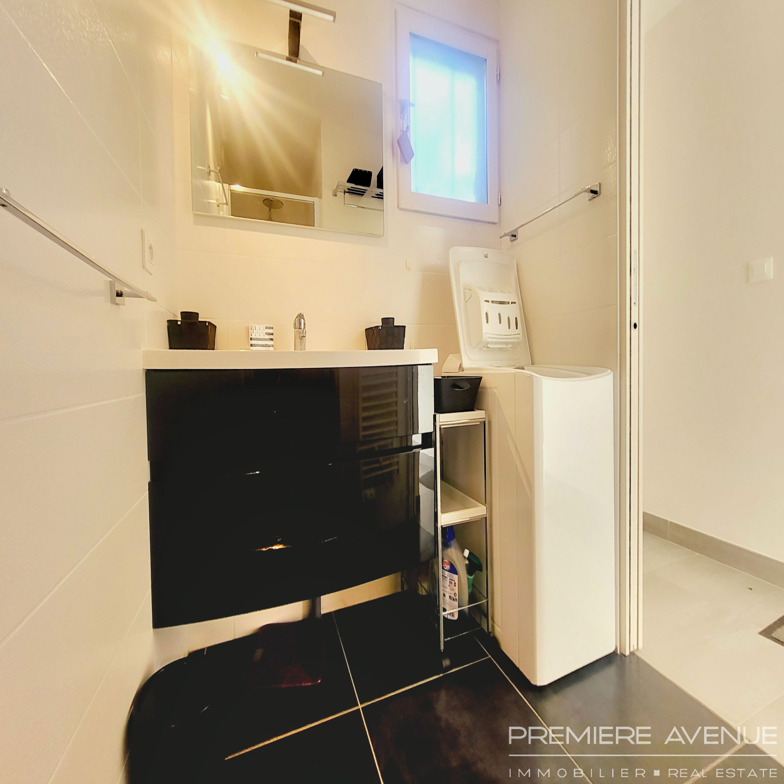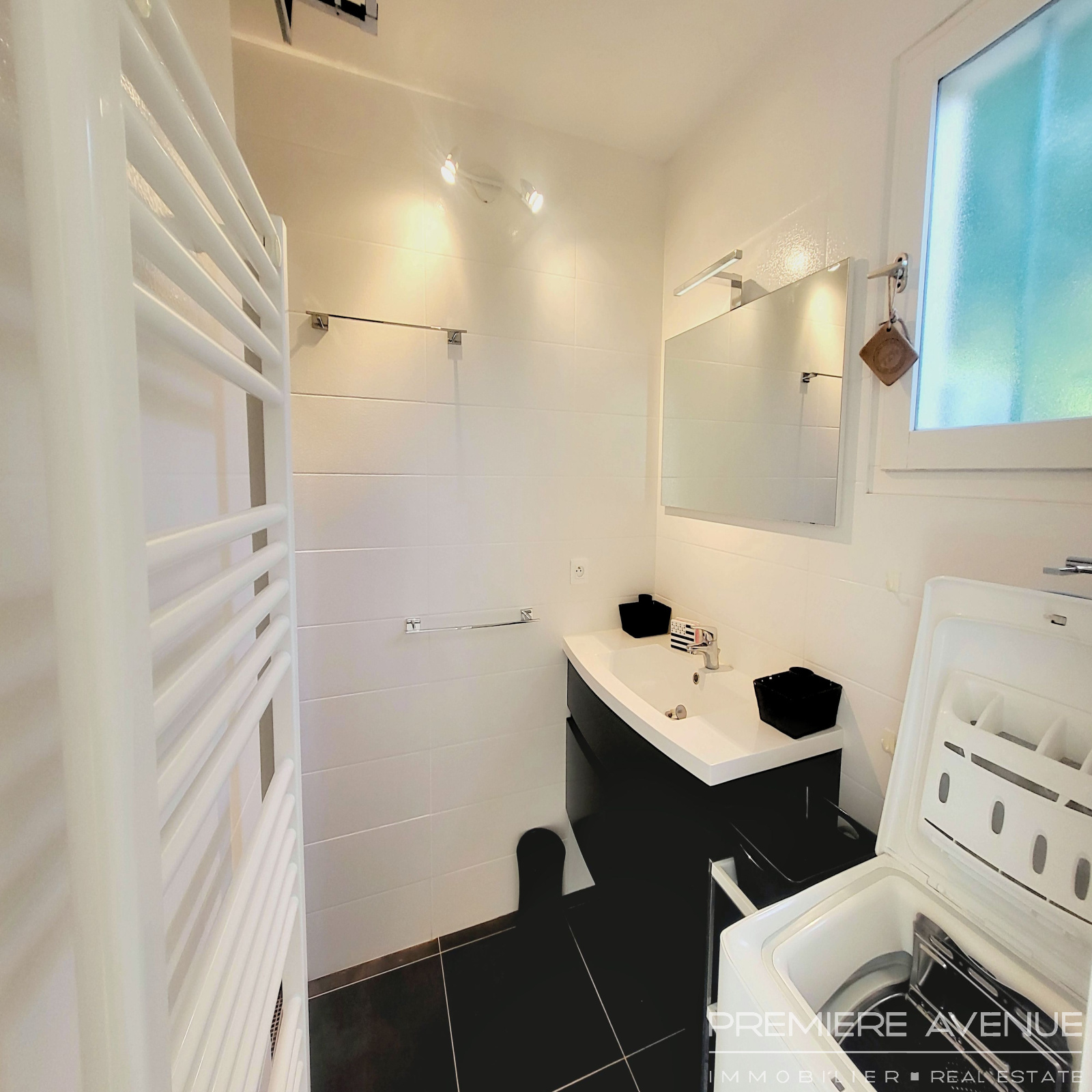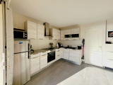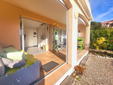 Appartement entièrement rénové, en rez-de-jardin, composé d'une terrasse couverte, un salon avec cuisine américaine, deux petites chambres, une salle d'eau et d'un jardin de 18m².