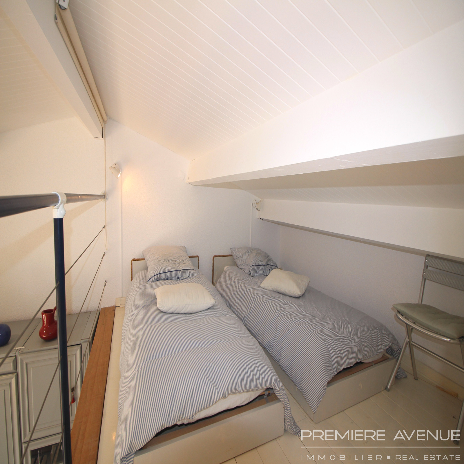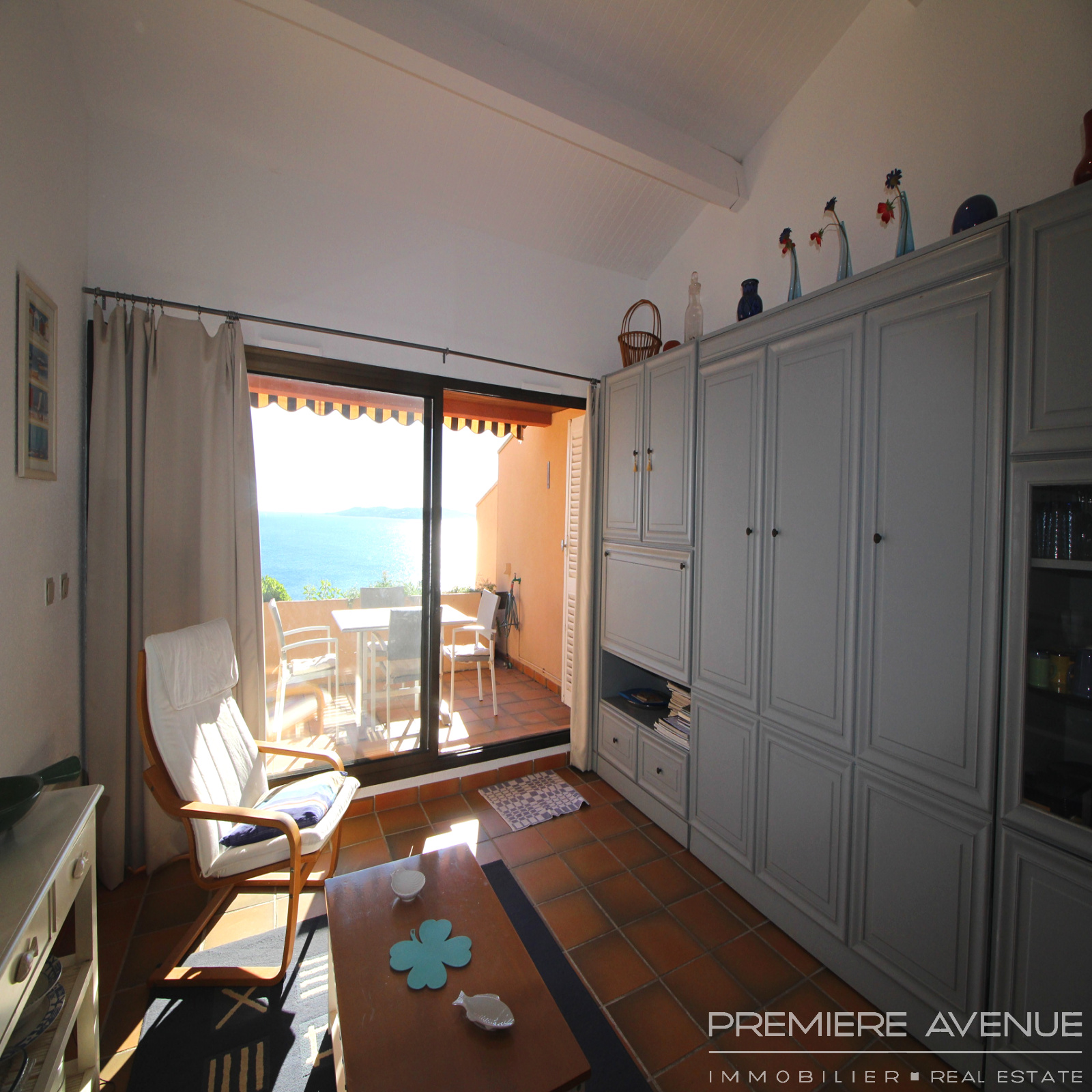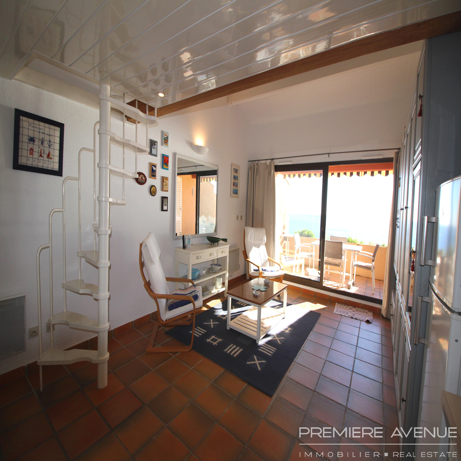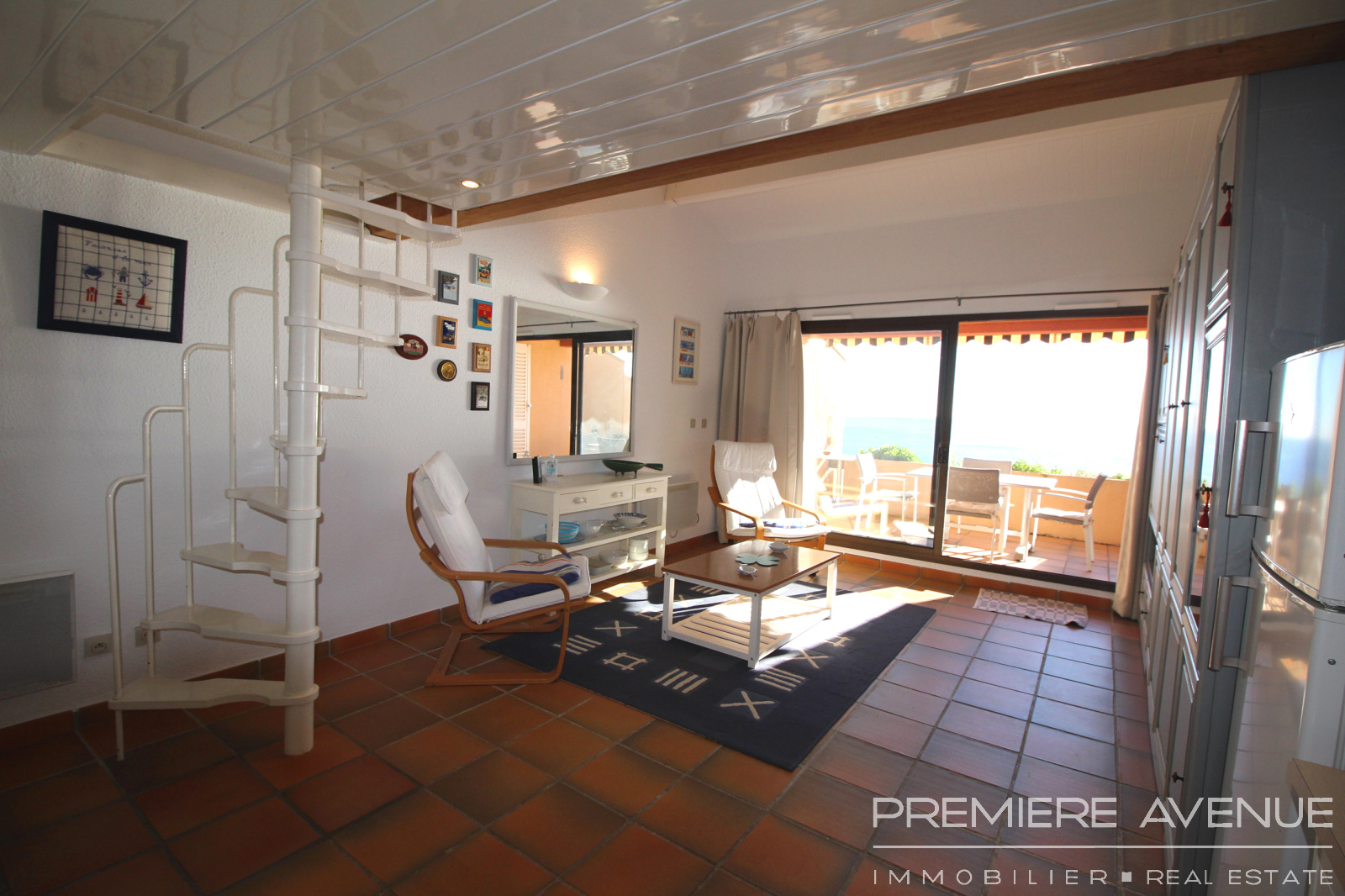 Vue mer époustouflante pour ce studio mezzanine situé dans une résidence avec piscine et accès privé à la plage.