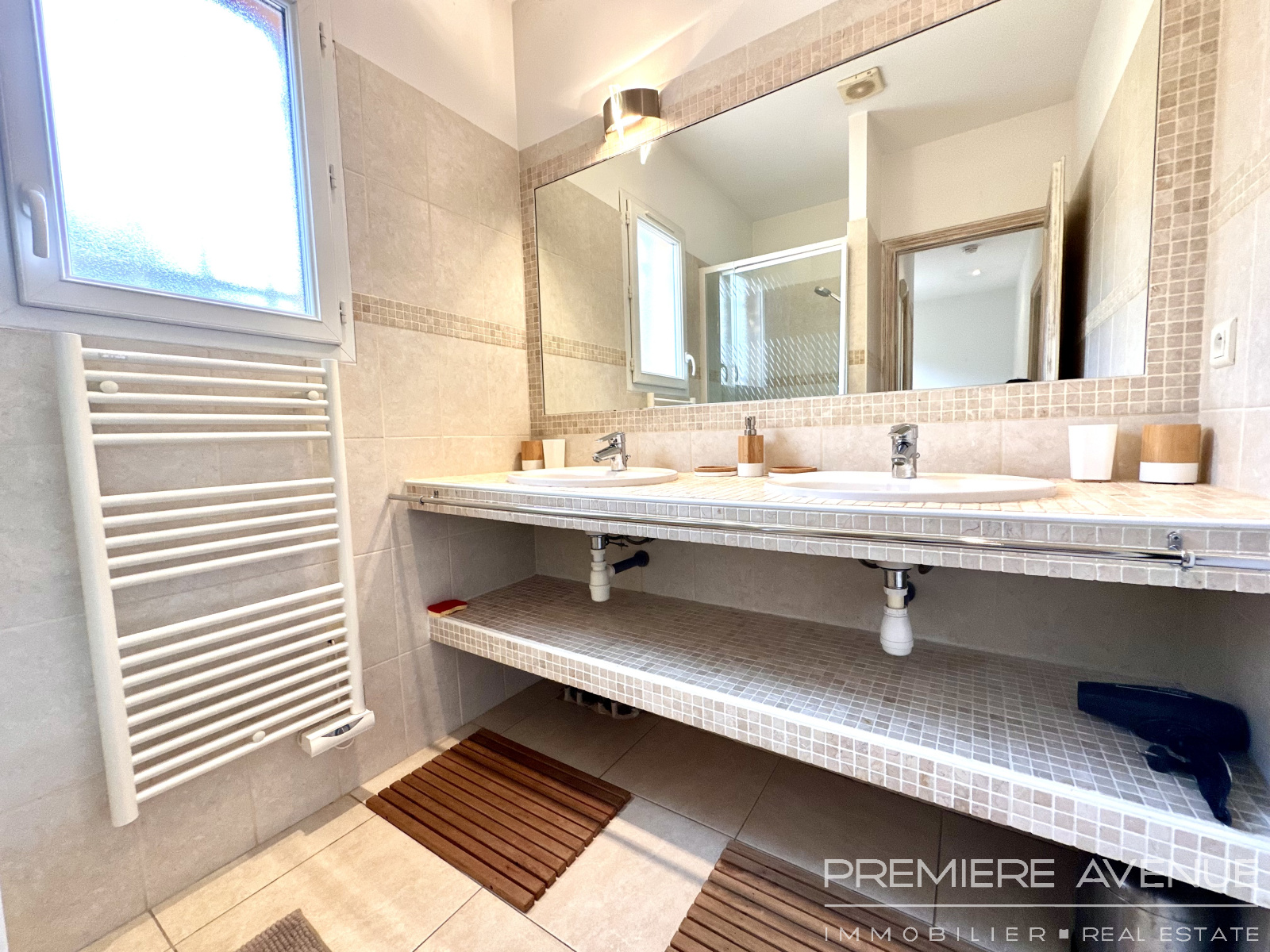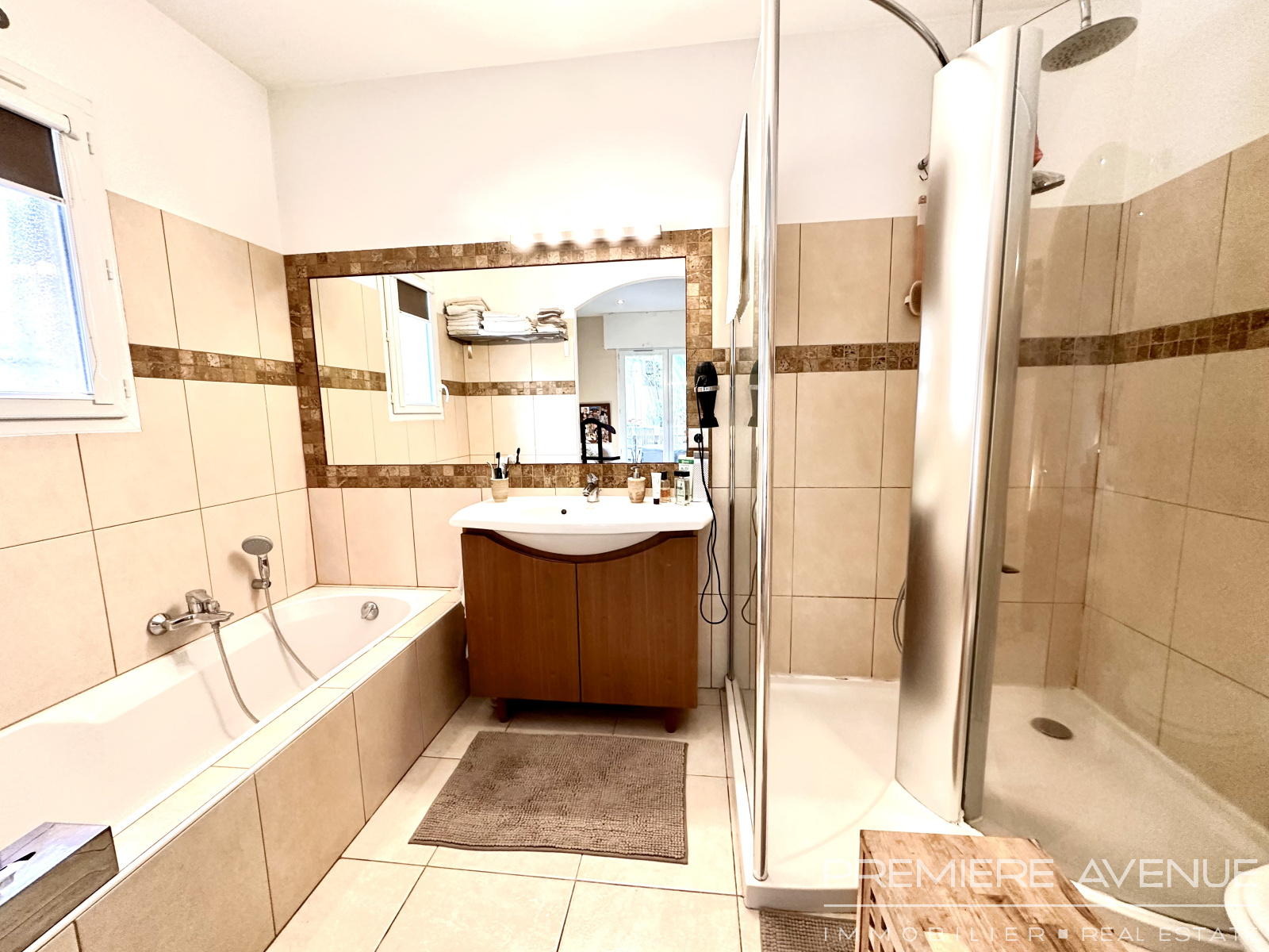 Son jardin paysagé de 450 m², sans vis-à-vis, invite à la détente avec ses terrasses en bois exotique, sa piscine chauffée, et une atmosphère zen. Garage et stationnements complètent ce cocon.