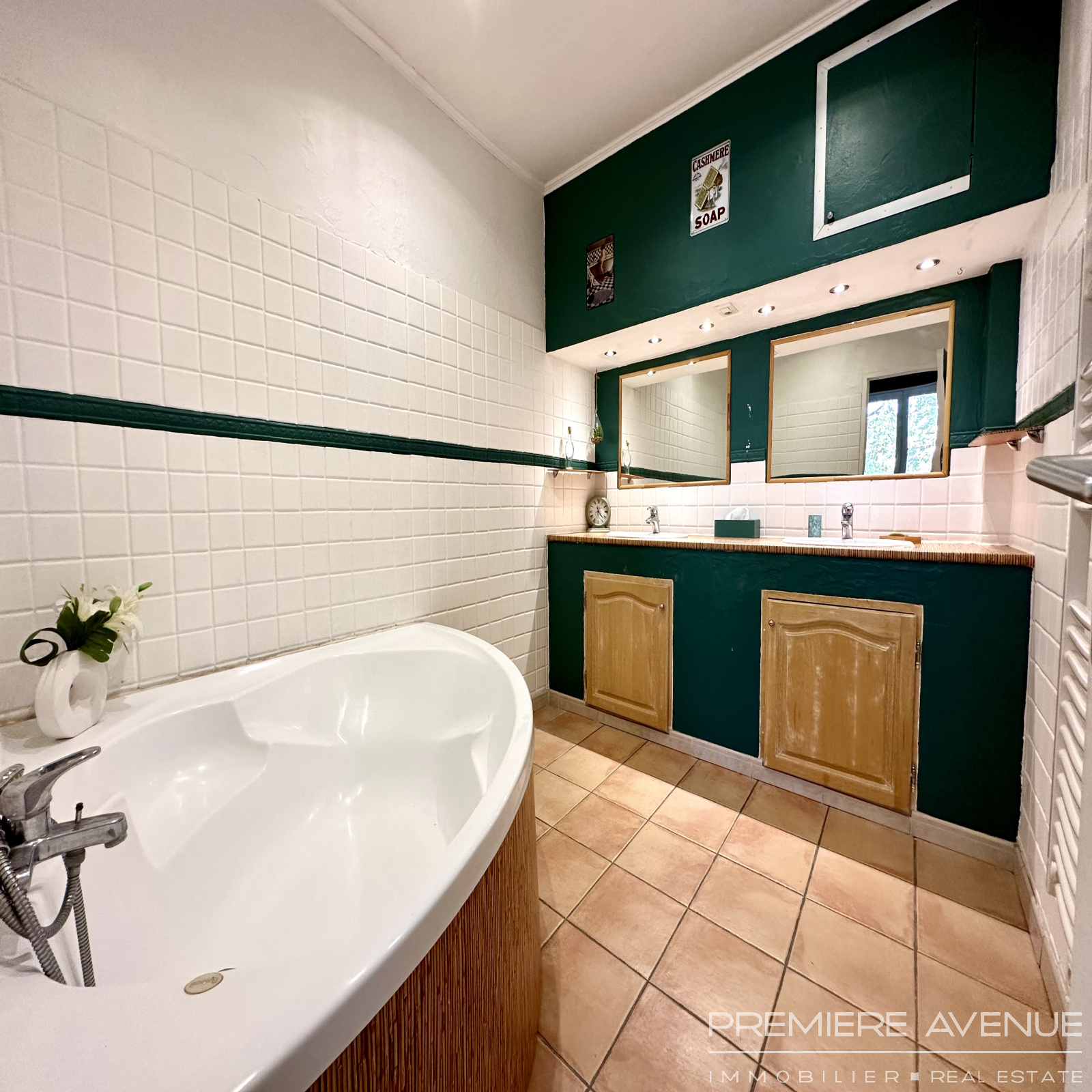 La propriété dispose également de deux grands garages ainsi que sept places de stationnement, ce qui en fait un bien rare pour une activité libérale, artisanale ou un investissement locatif.