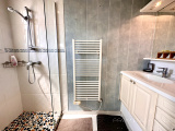 Un appartement 3 pièces indépendant à l’étage, avec salon et cuisine américaine ouvrant sur une terrasse, deux chambres, salle d’eau et toilettes.