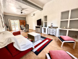 L’habitation principale, un 4 pièces, comprend un salon lumineux ouvert sur le jardin et la piscine, une cuisine séparée, un bureau, des toilettes, ainsi que deux suites à l’étage avec leurs propres salles d’eau.