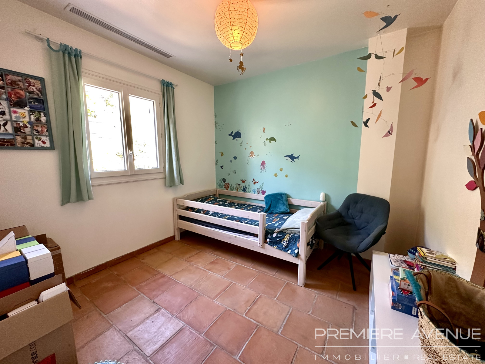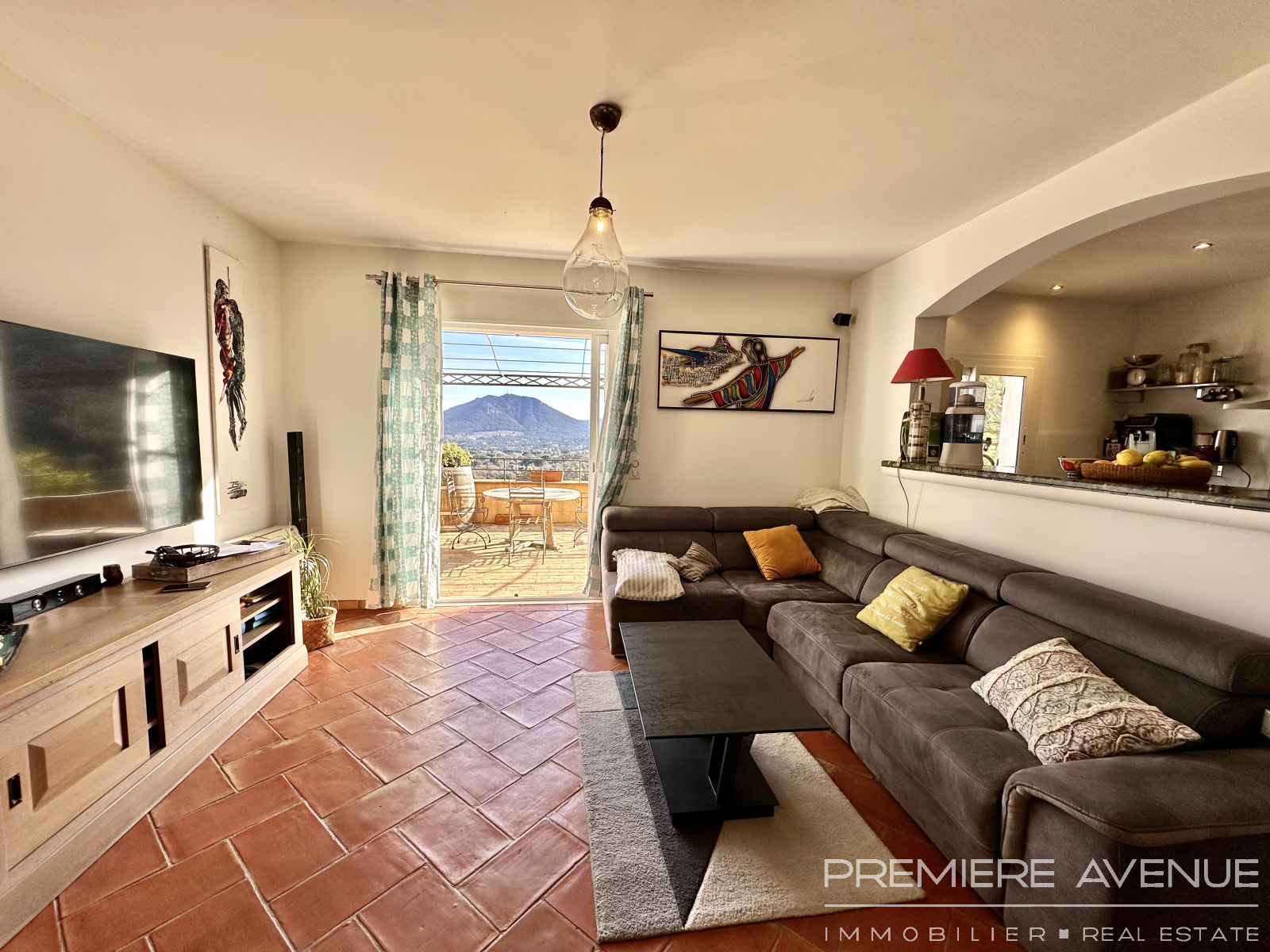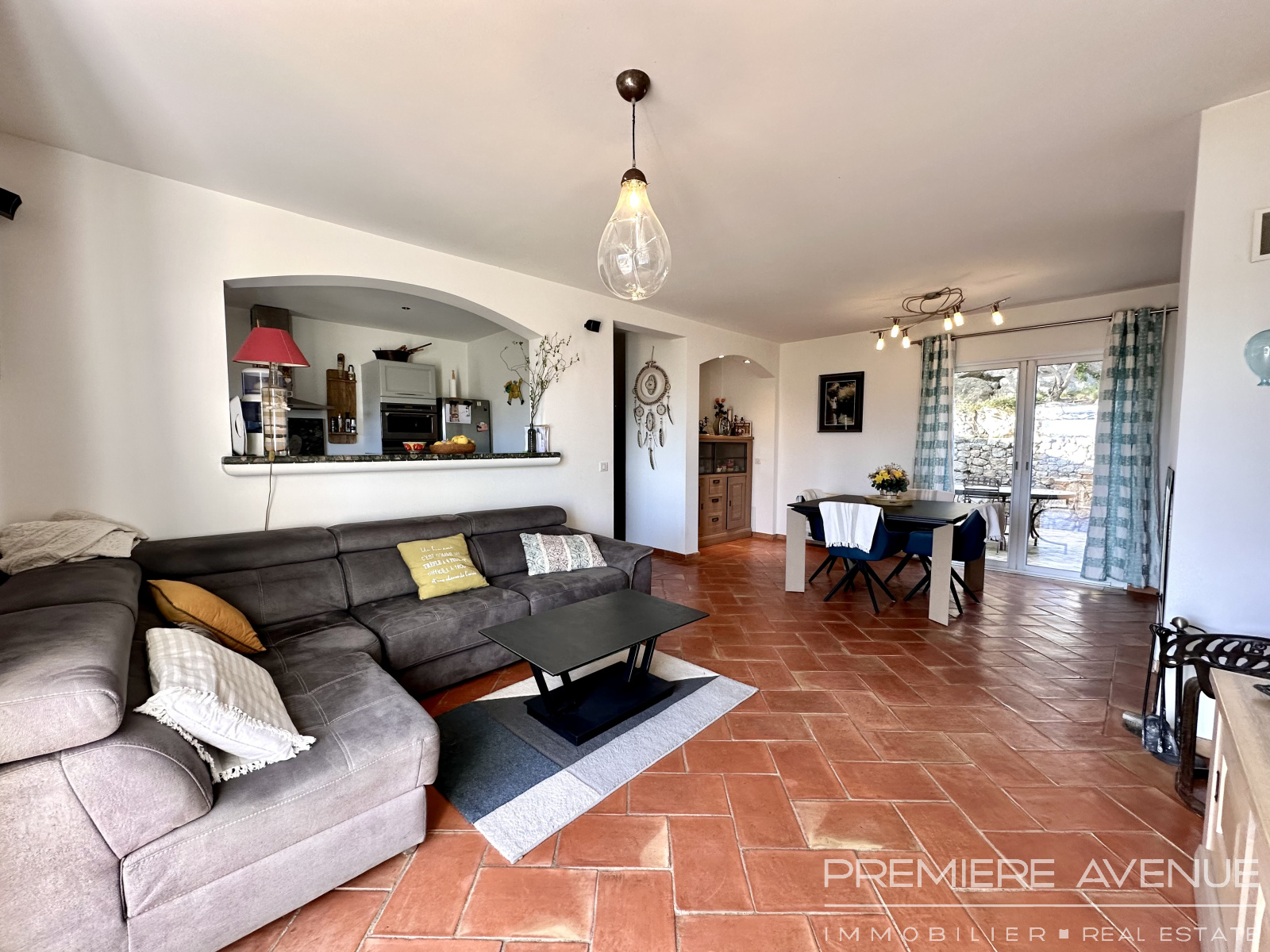 Elle se compose au rez-de-chaussée d’un vaste salon lumineux ouvert sur deux terrasses offrant une vue imprenable sur les collines environnantes, d’une cuisine équipée, d’une buanderie, d’un WC, ainsi que d’une chambre avec salle d’eau. À l’étage, trois chambres confortables, une salle de bains et un second WC.
