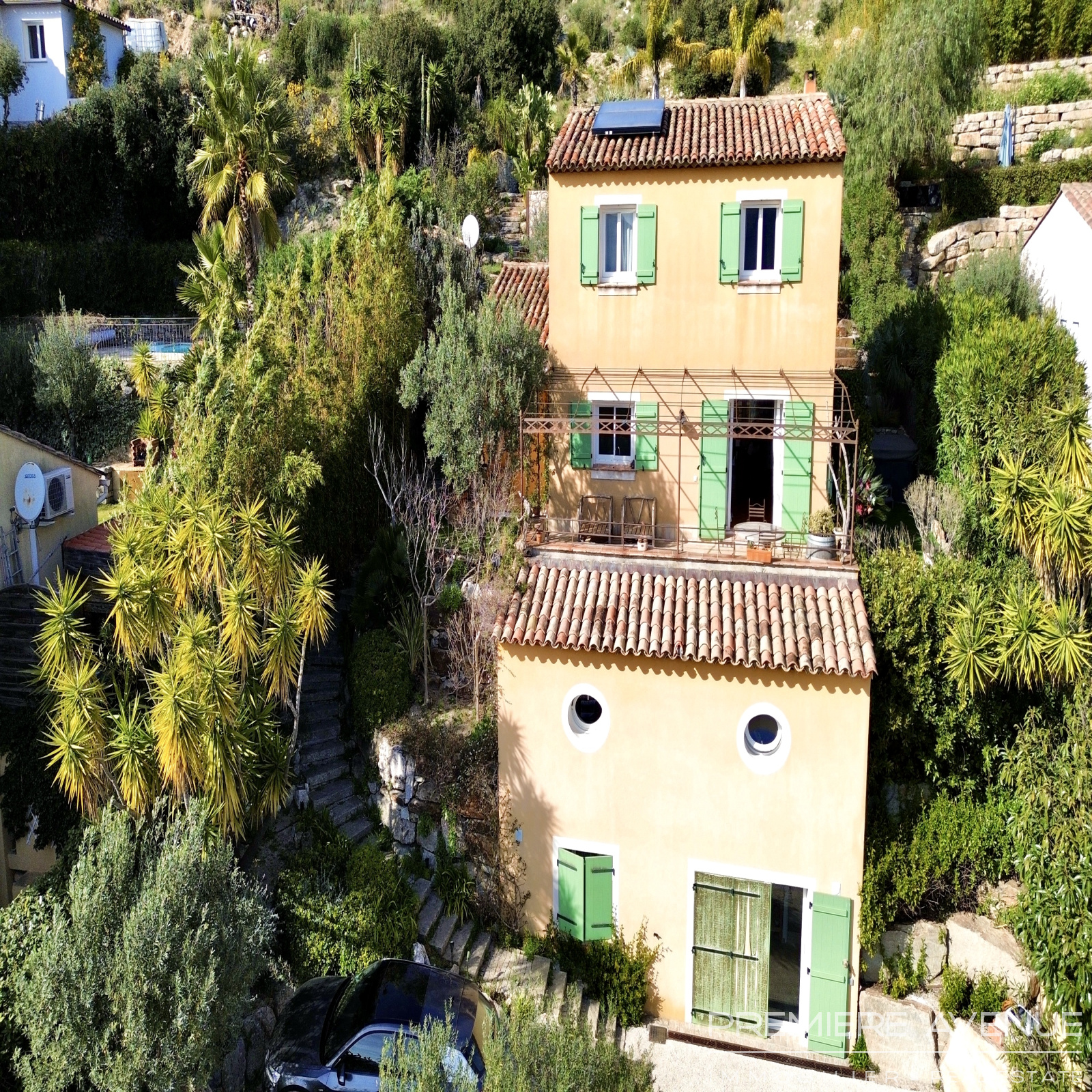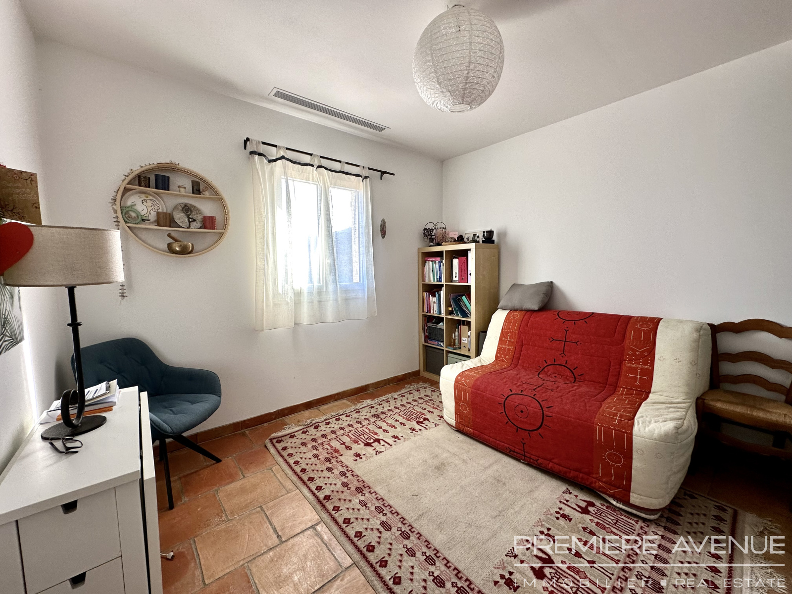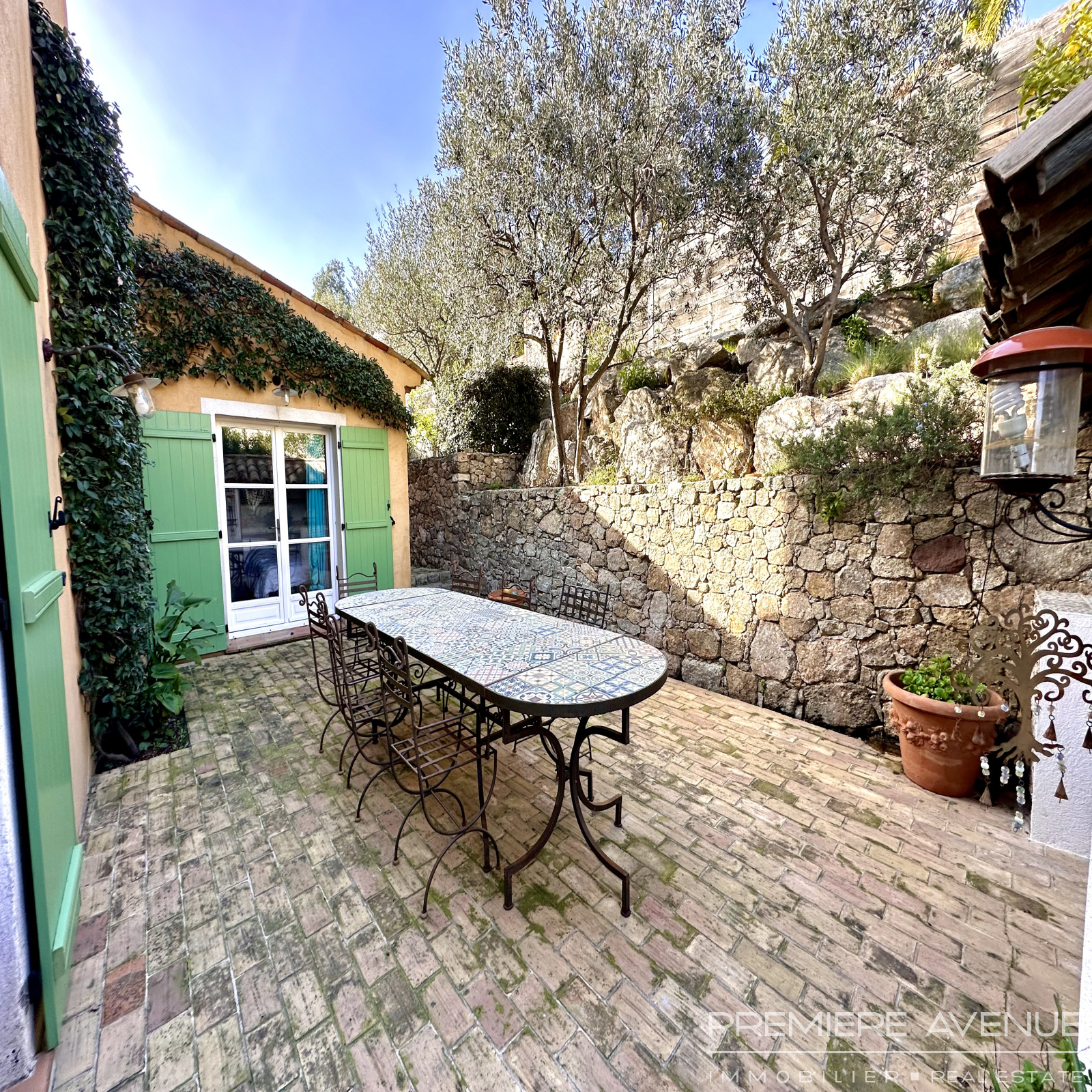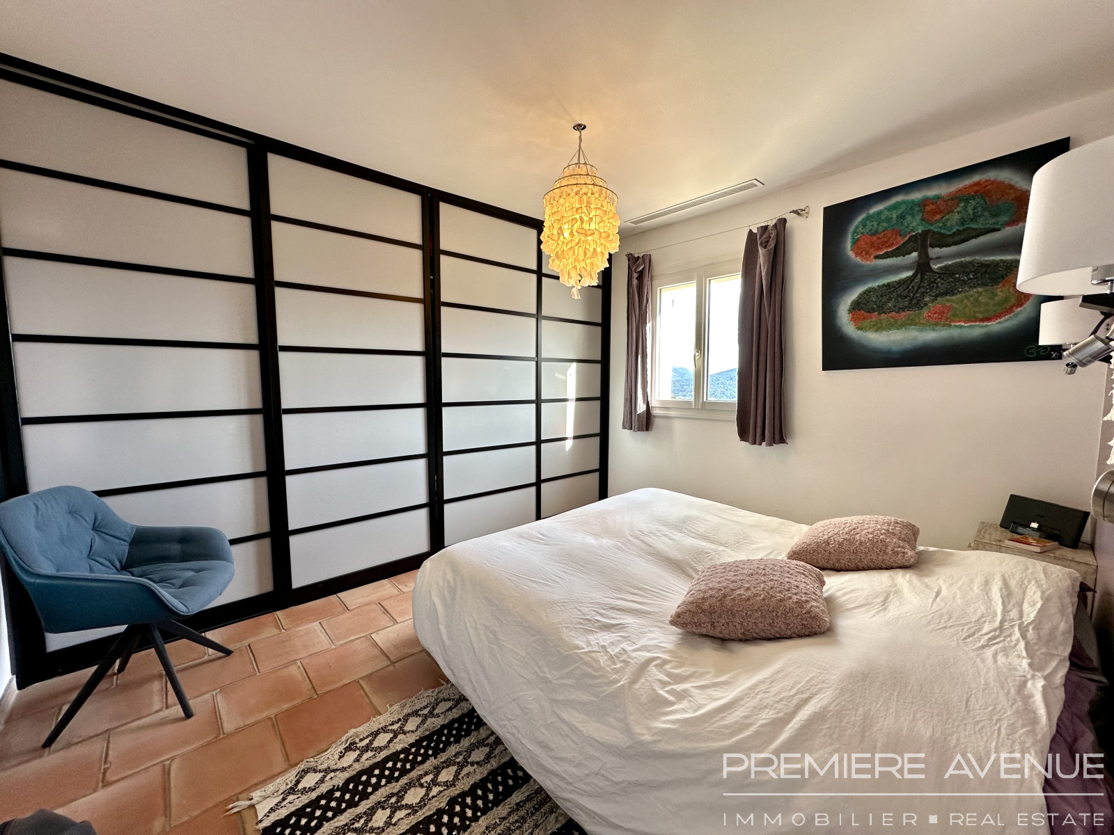 Elle se compose au rez-de-chaussée d’un vaste salon lumineux ouvert sur deux terrasses offrant une vue imprenable sur les collines environnantes, d’une cuisine équipée, d’une buanderie, d’un WC, ainsi que d’une chambre avec salle d’eau. À l’étage, trois chambres confortables, une salle de bains et un second WC.