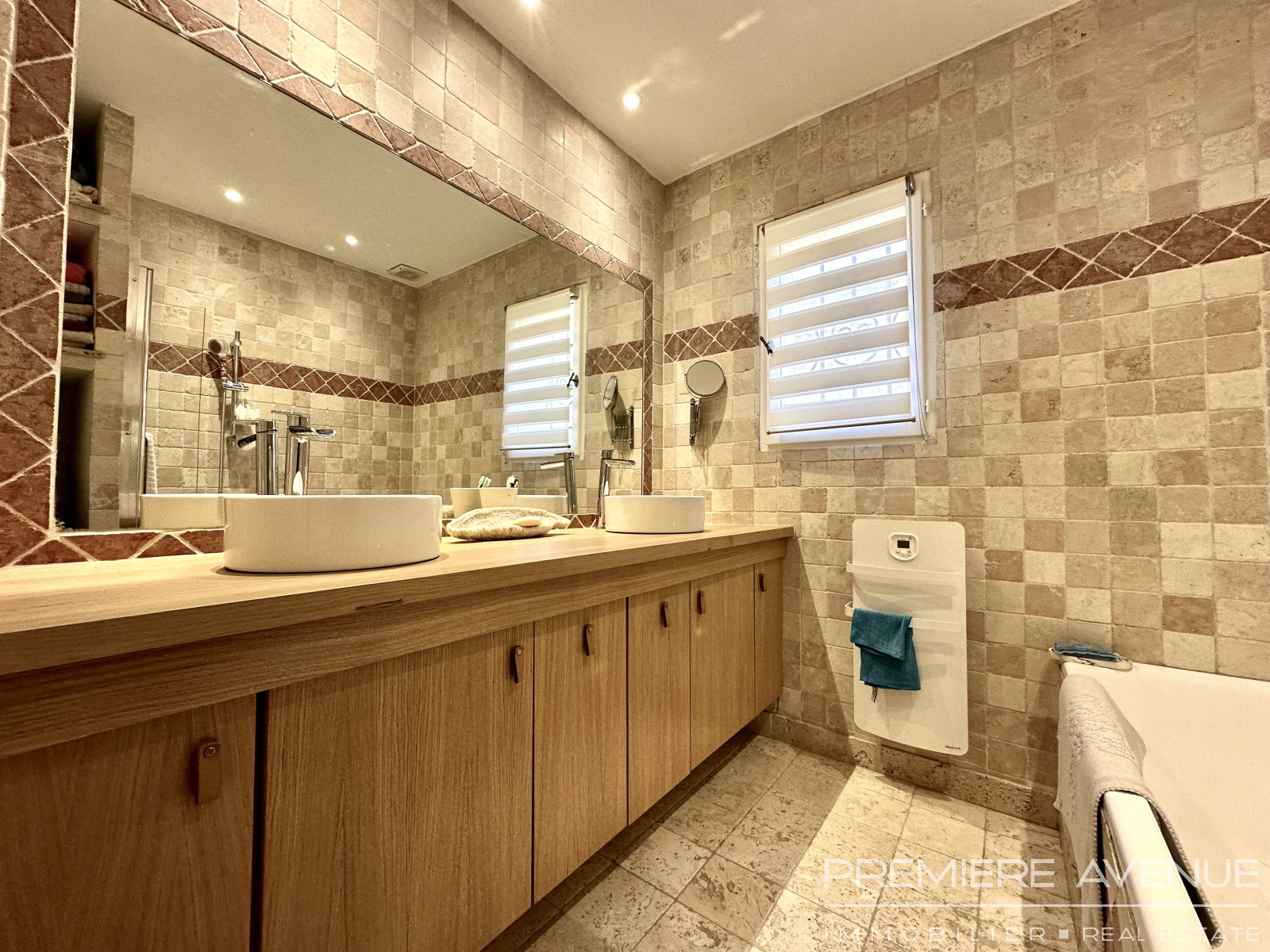 À l’extérieur, vous profiterez d’un jardin paysager avec piscine, d’un garage, de deux grandes caves et surtout d’un appartement indépendant de 40 m² – parfait pour accueillir famille, amis ou pour un rendement locatif.