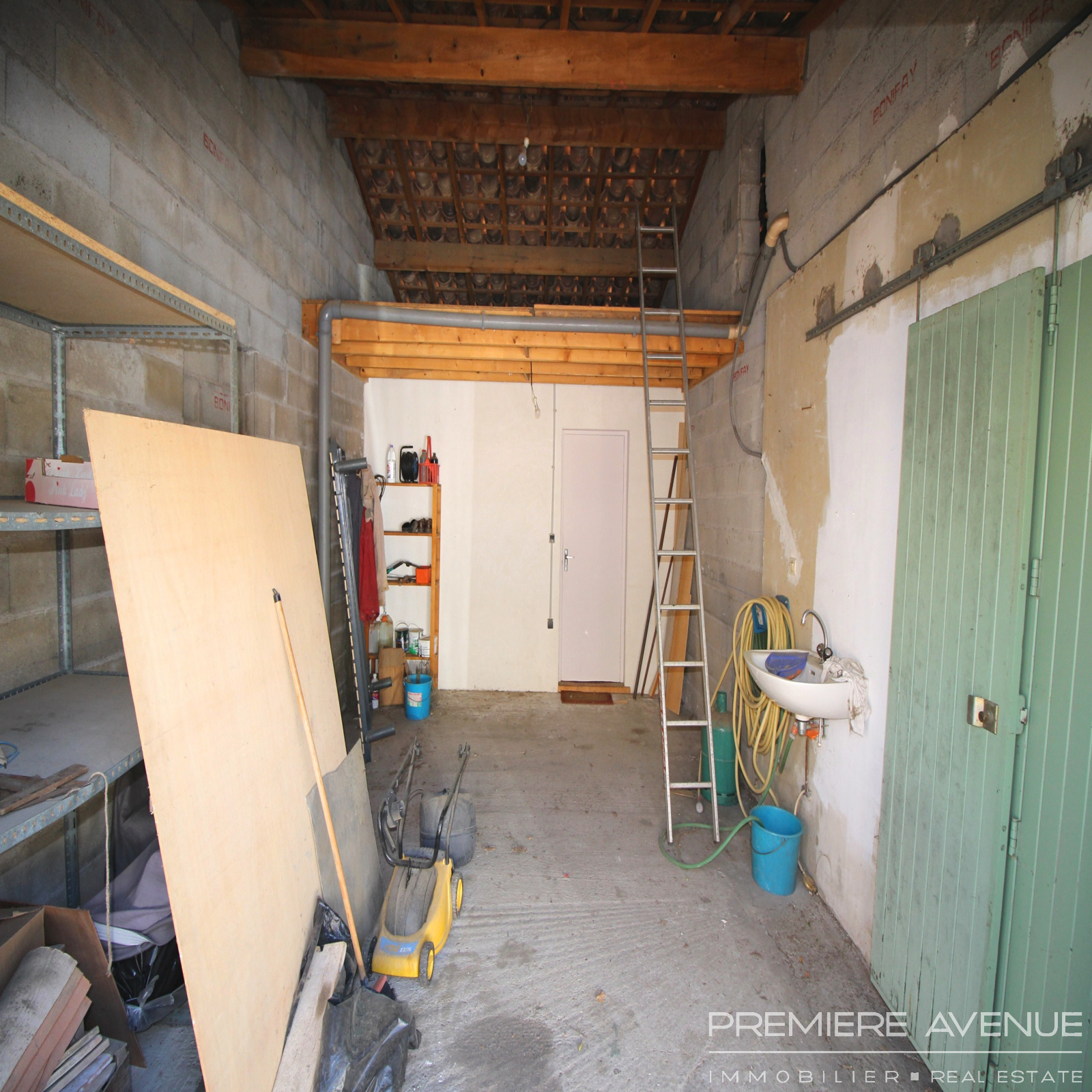En contrebas, 2 chambres, une salle de bain, un WC, une buanderie et un large séjour avec cuisine américaine donnant sur une large terrasse.