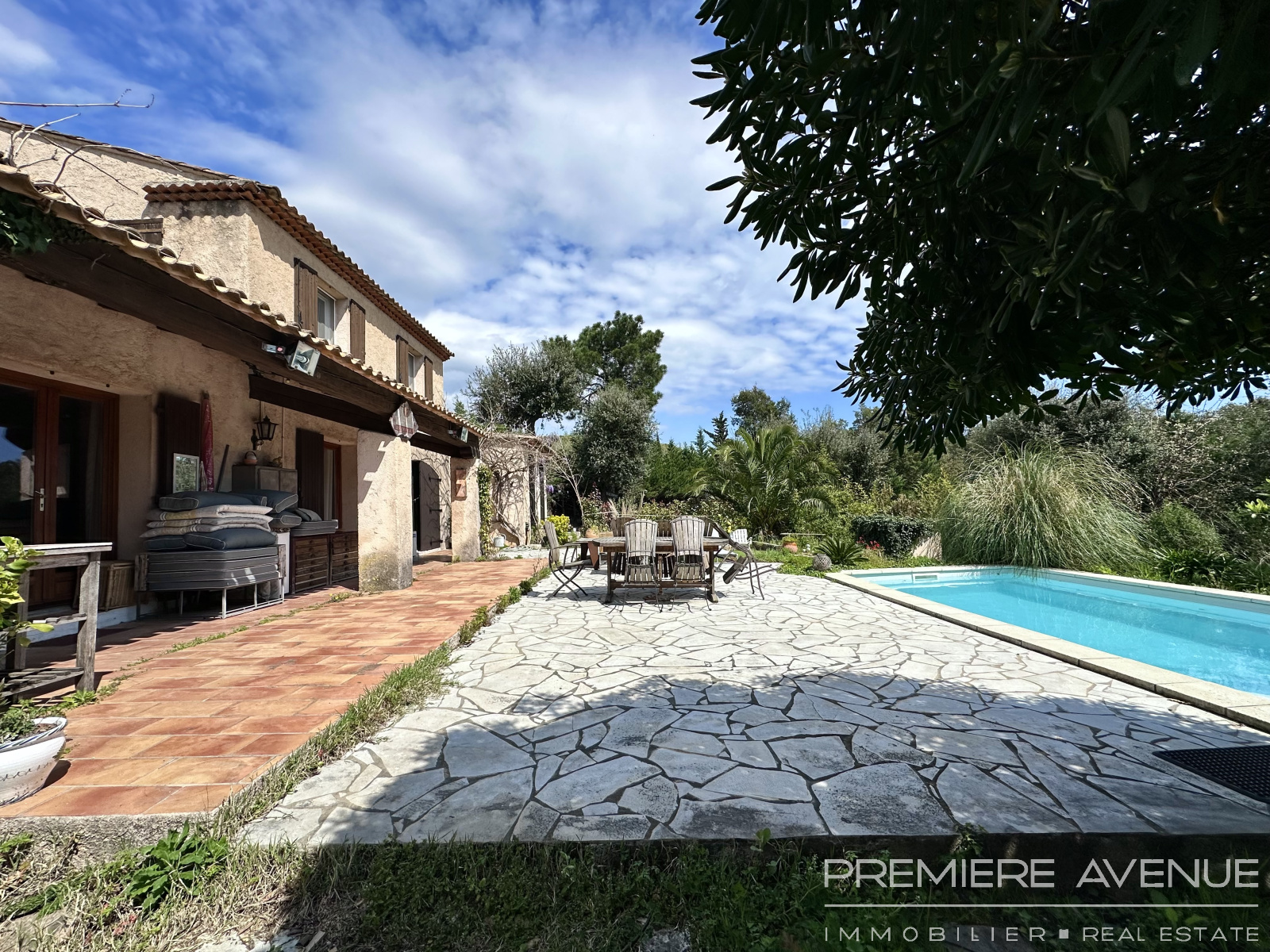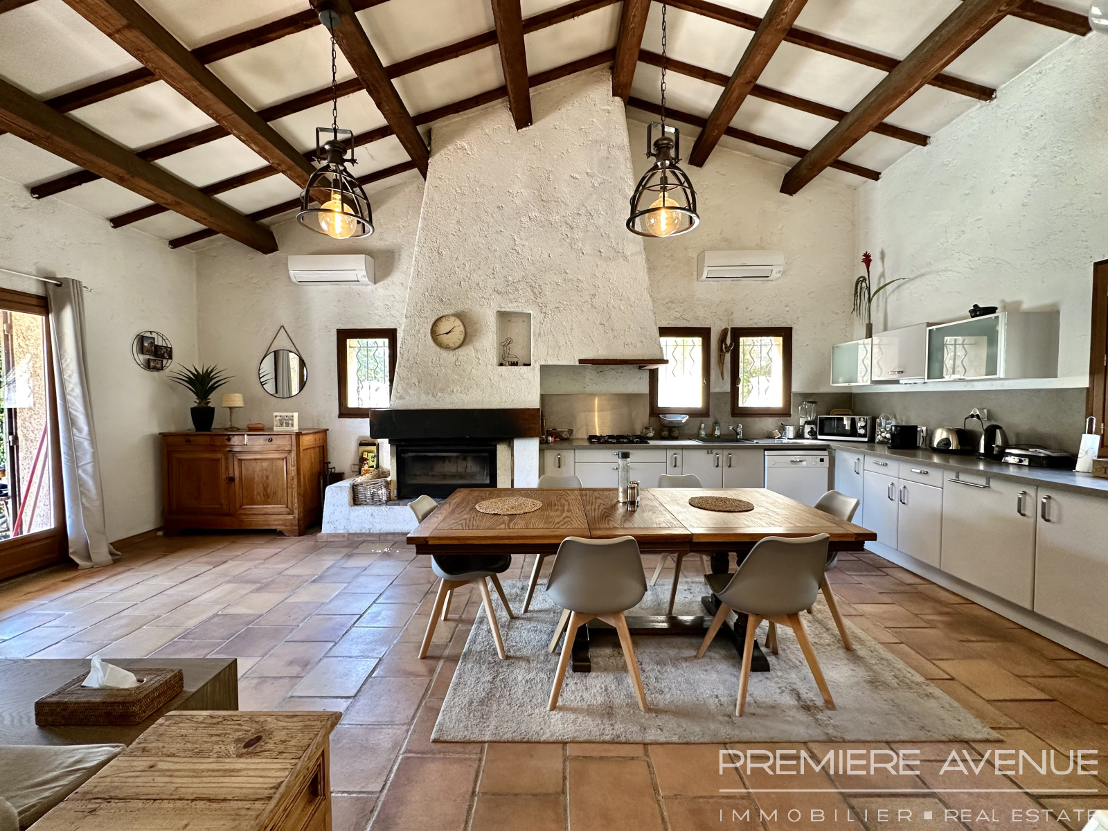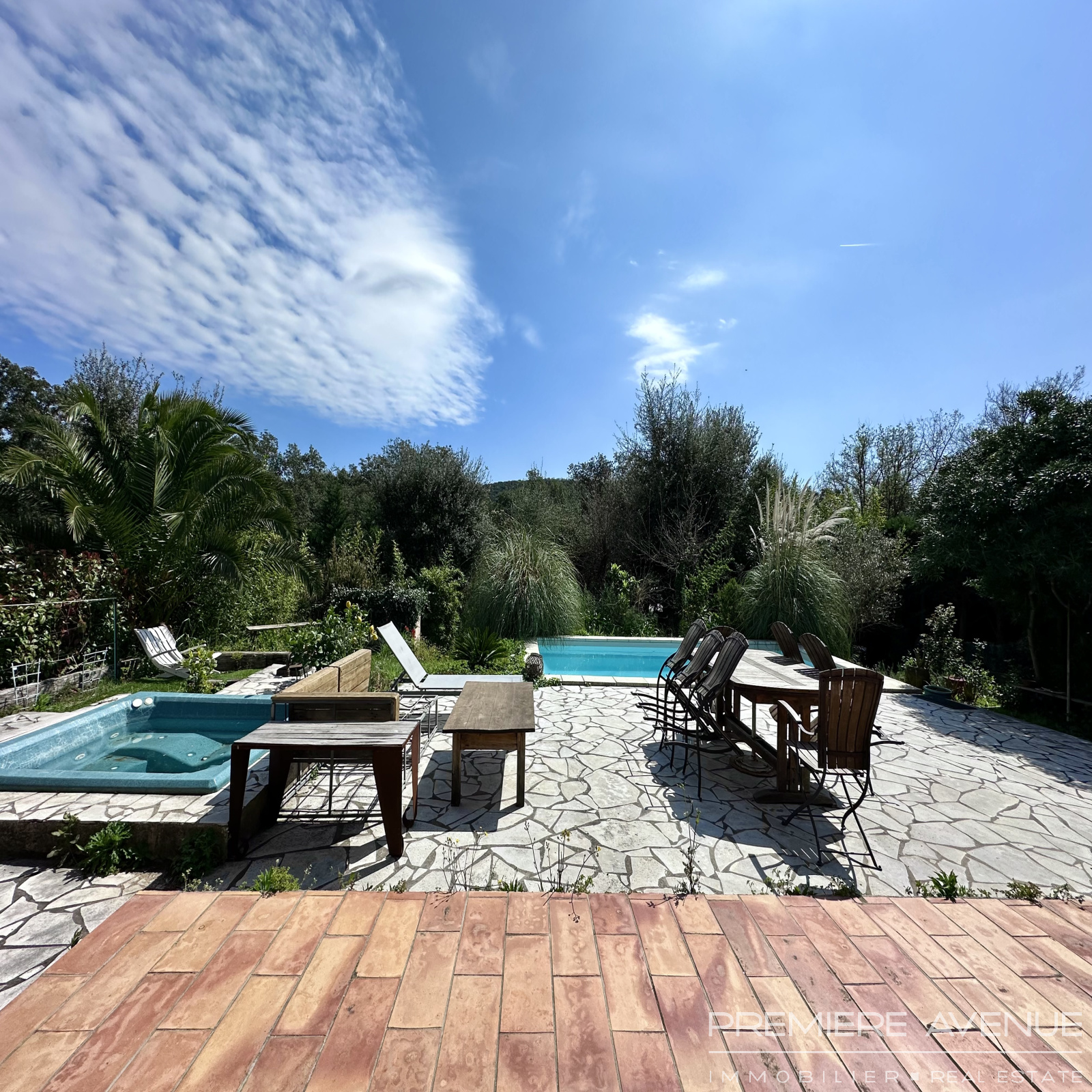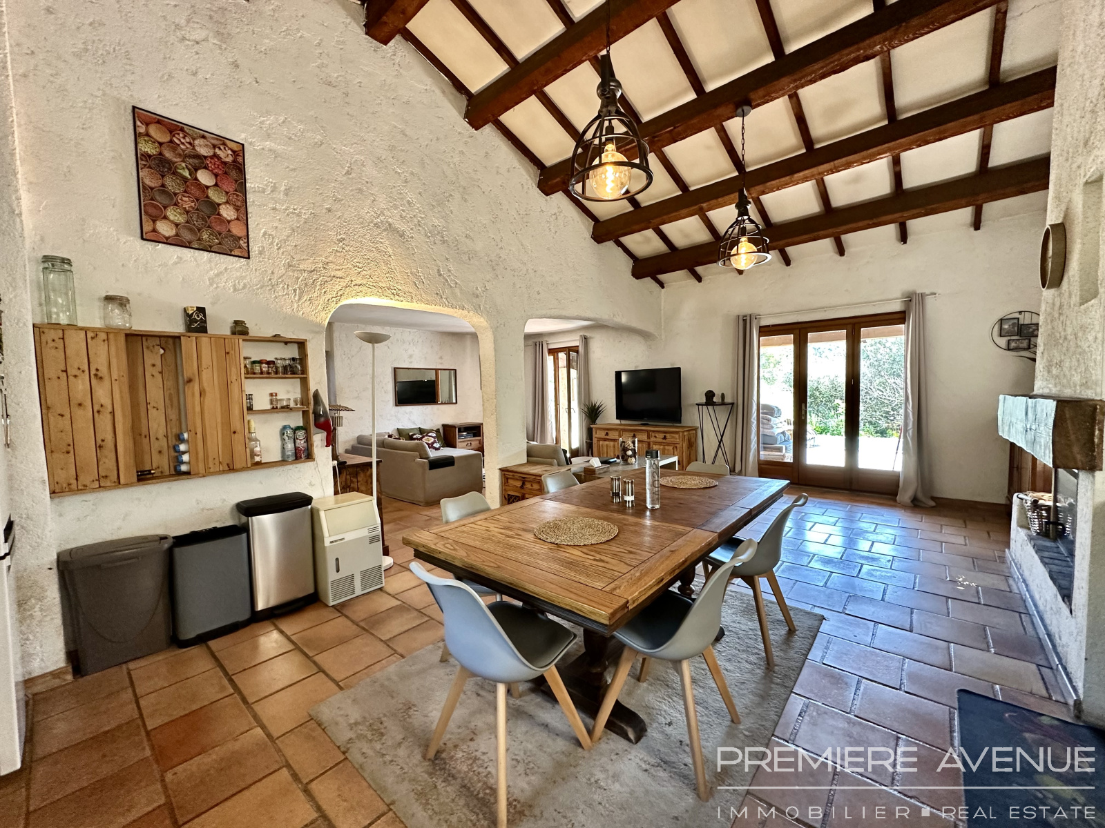 Édifiée sur un terrain plat et sans vis-à-vis de 906 m², cette villa exposée plein sud offre une surface habitable d’environ 140 m², complétée par de nombreuses annexes et un studio indépendant avec accès privé.