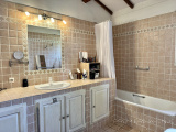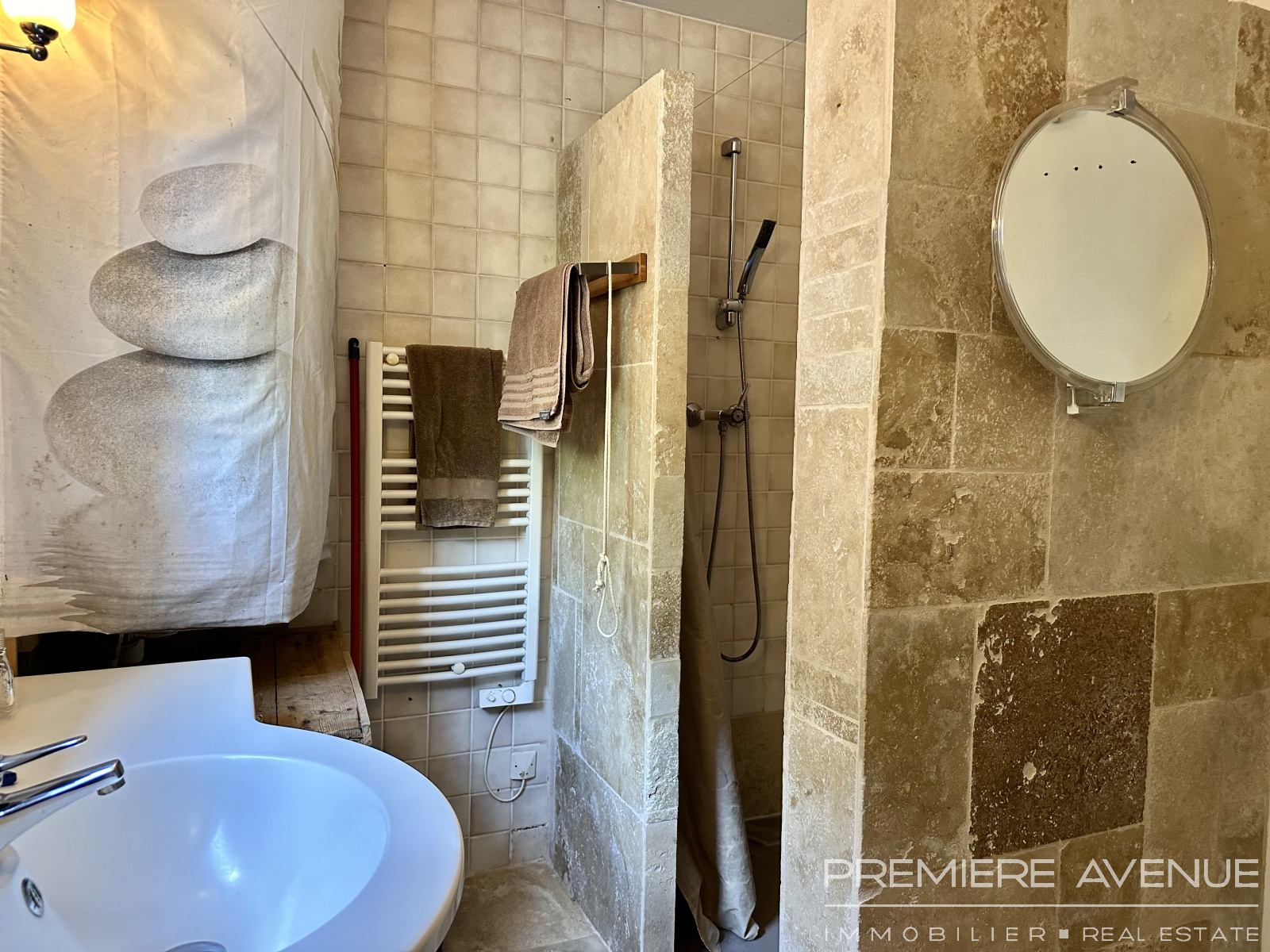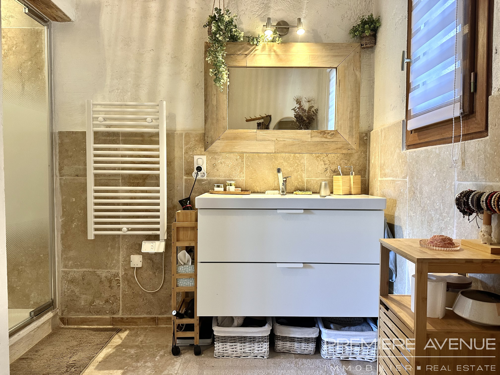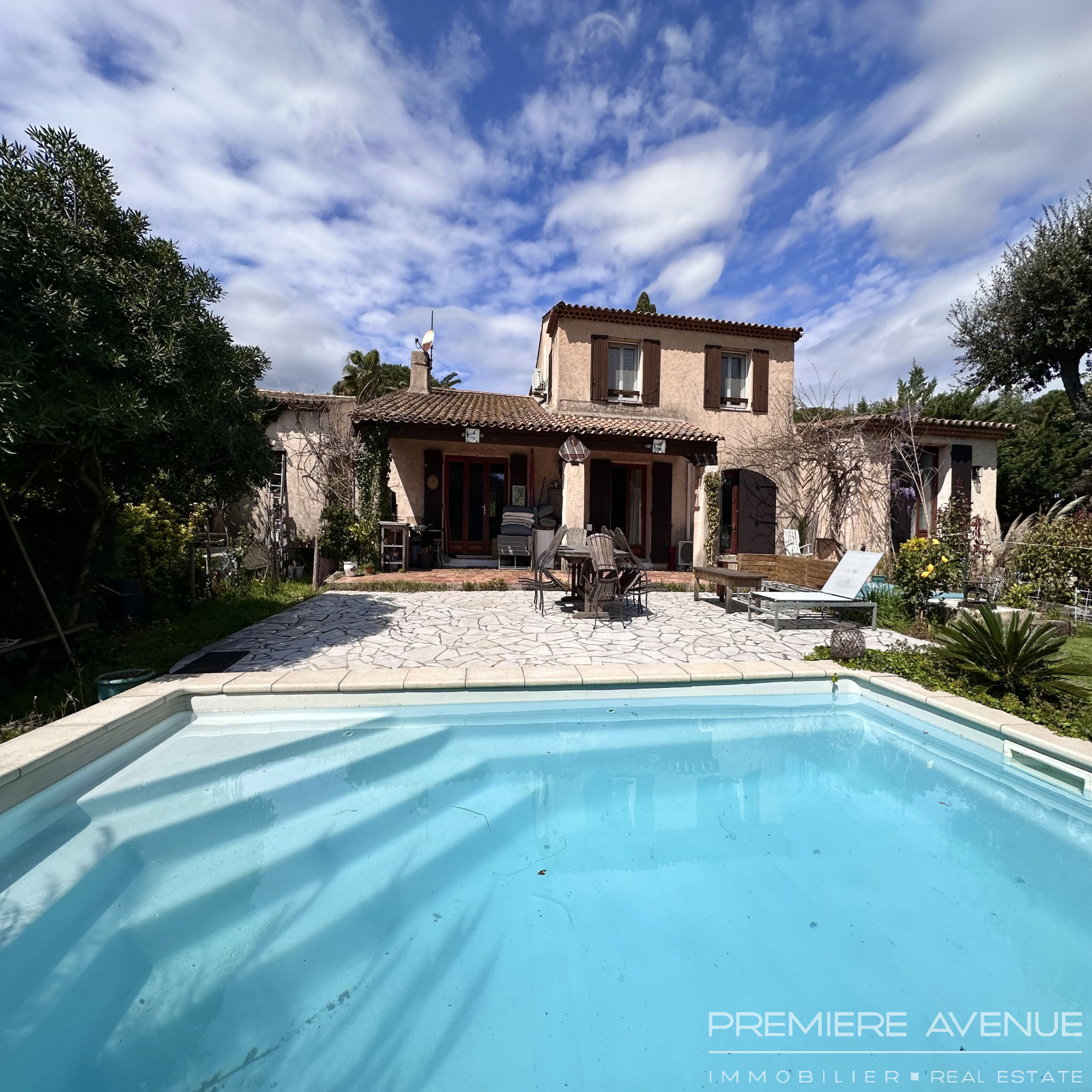 Édifiée sur un terrain plat et sans vis-à-vis de 906 m², cette villa exposée plein sud offre une surface habitable d’environ 140 m², complétée par de nombreuses annexes et un studio indépendant avec accès privé.