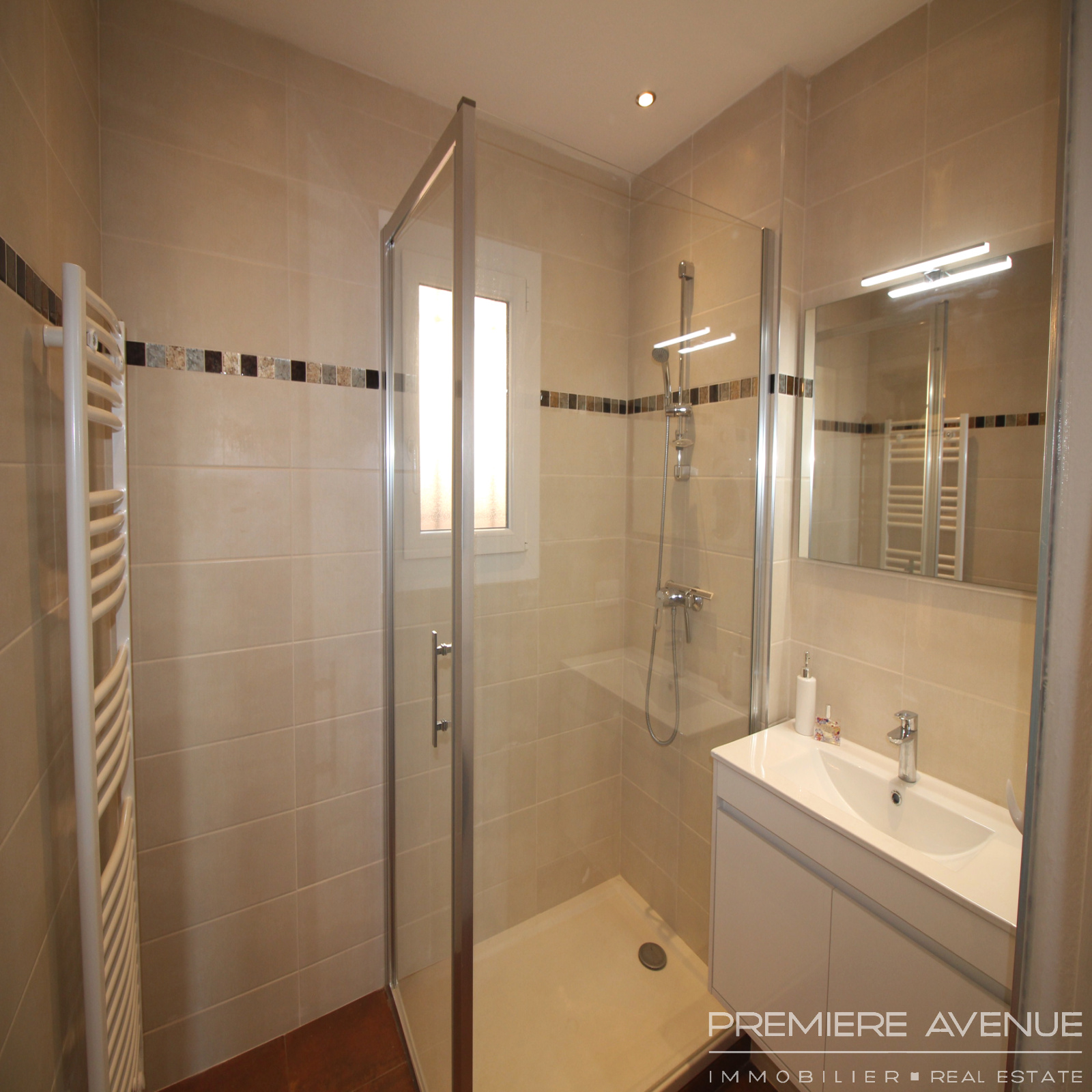 Entrée, salle d'eau neuve, chambre, séjour avec plusieurs fenêtres récemment remplacées et coin cuisine équipée.