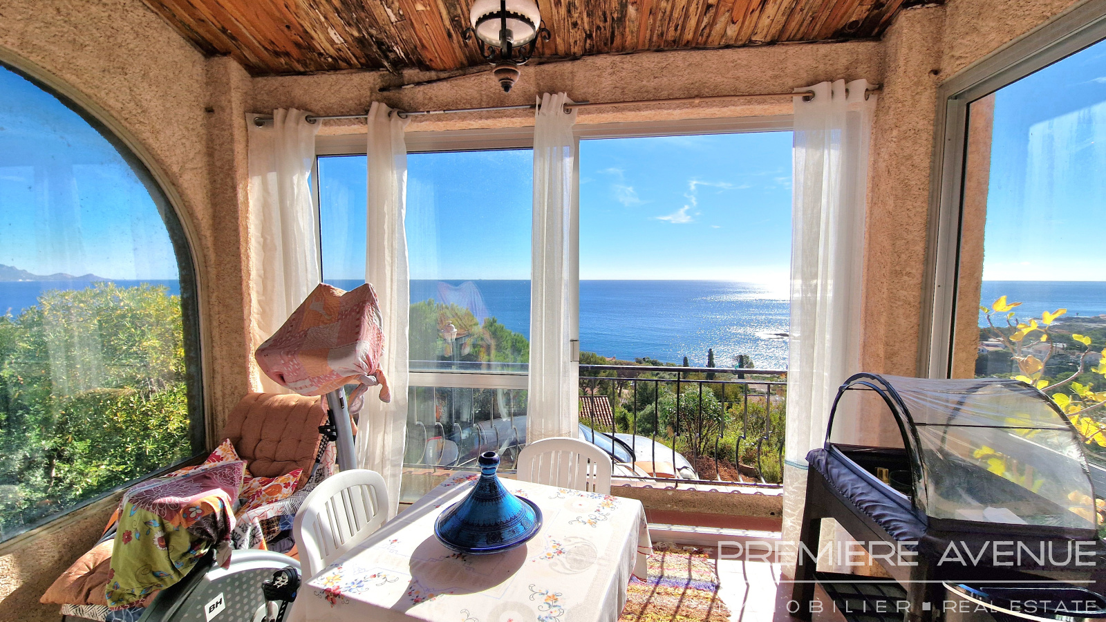 À quelques minutes seulement des plages, découvrez cette magnifique villa provençale de 120 m2 offrant une vue mer à couper le souffle à 180°, s’étendant majestueusement jusqu’au massif de l’Esterel.
