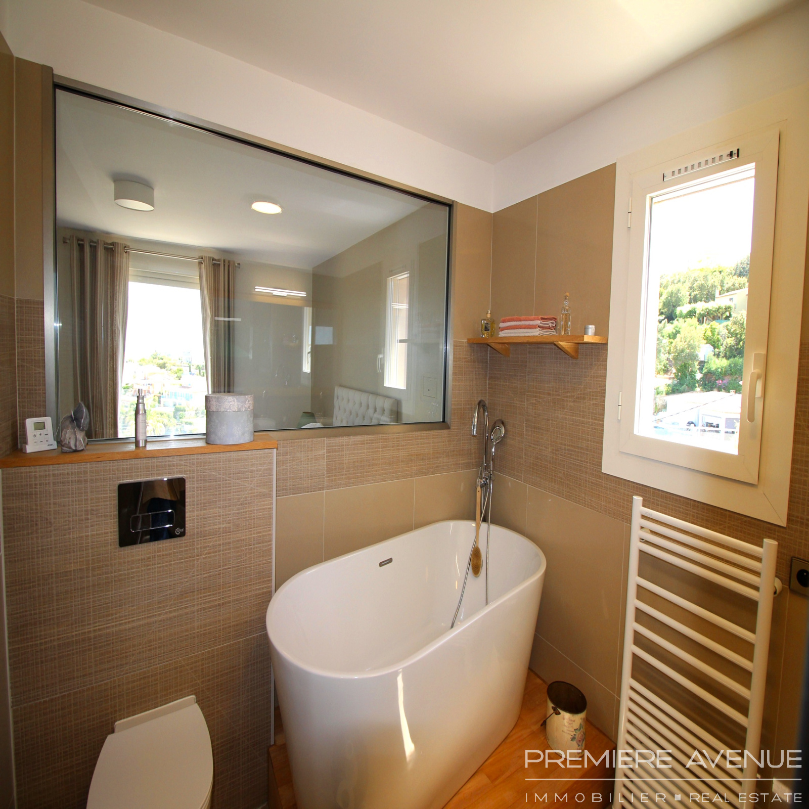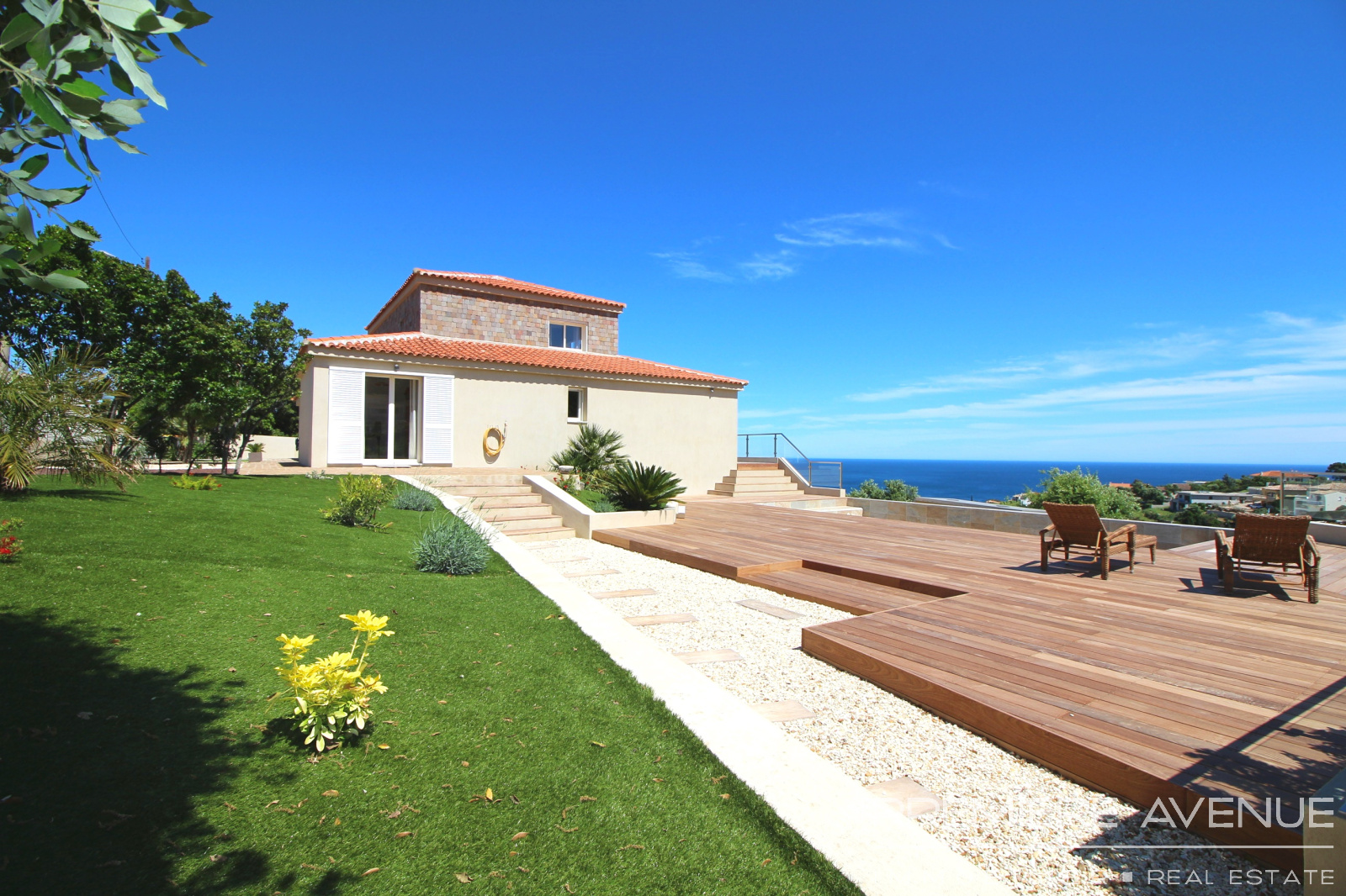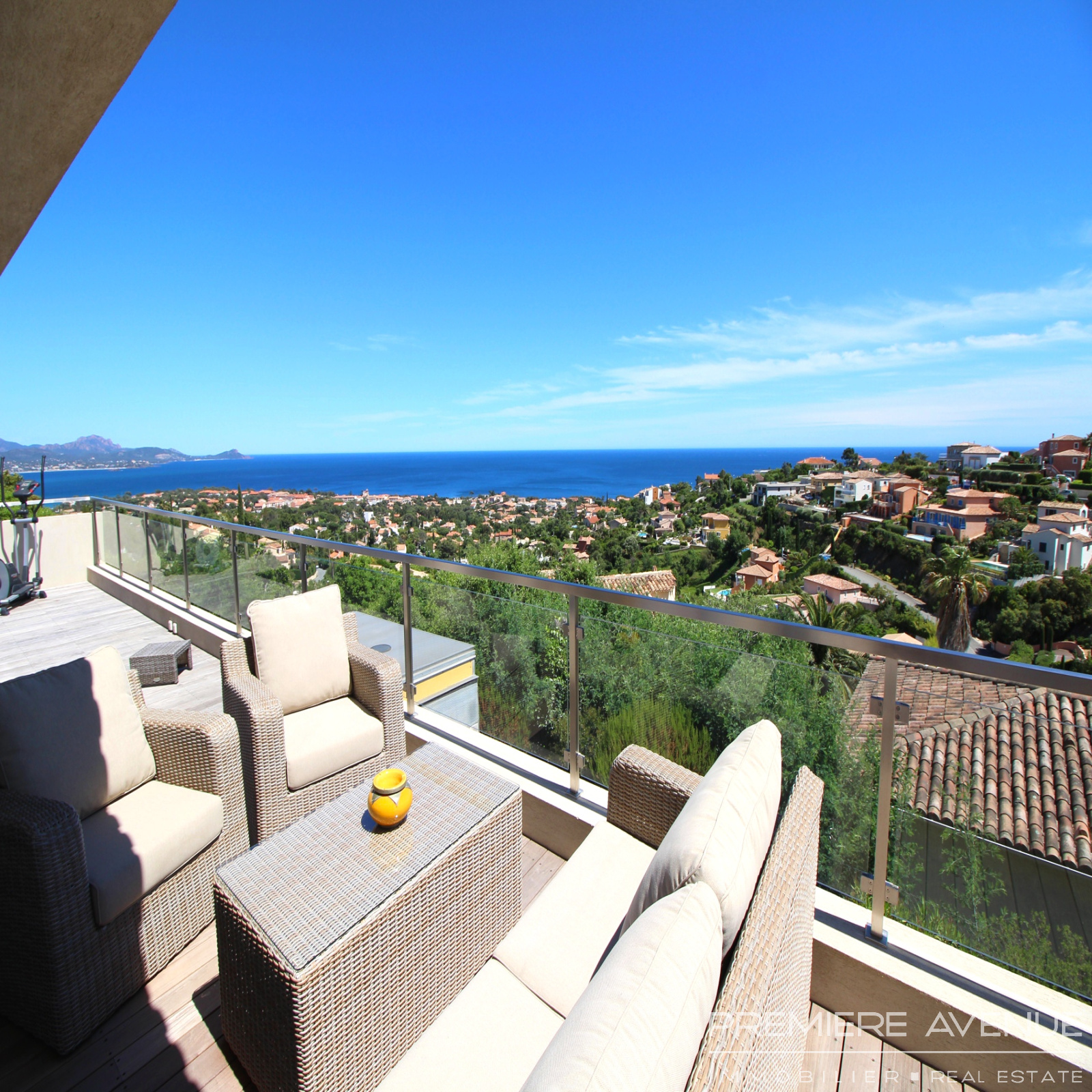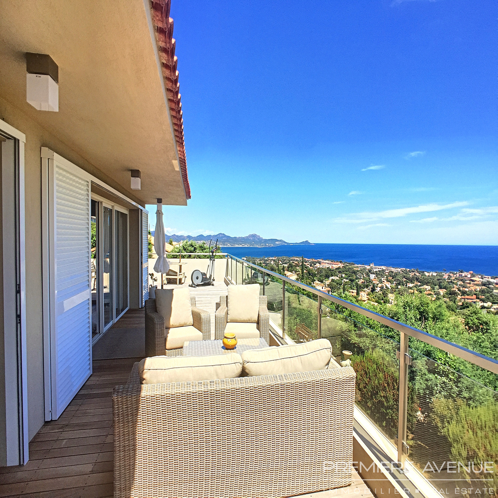 Vue dominante sur la Méditerranée, l’Esterel et l'horizon sur les hauteurs de Saint Aygulf, dans un secteur calme au bout d'une impasse.