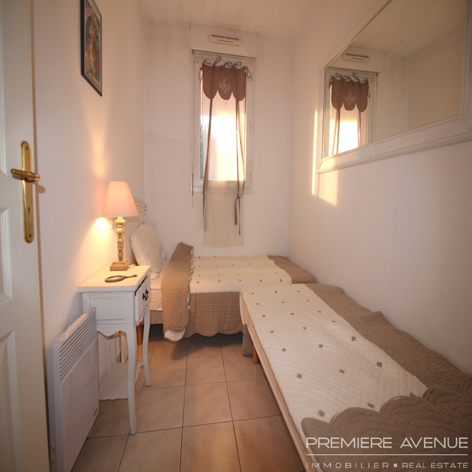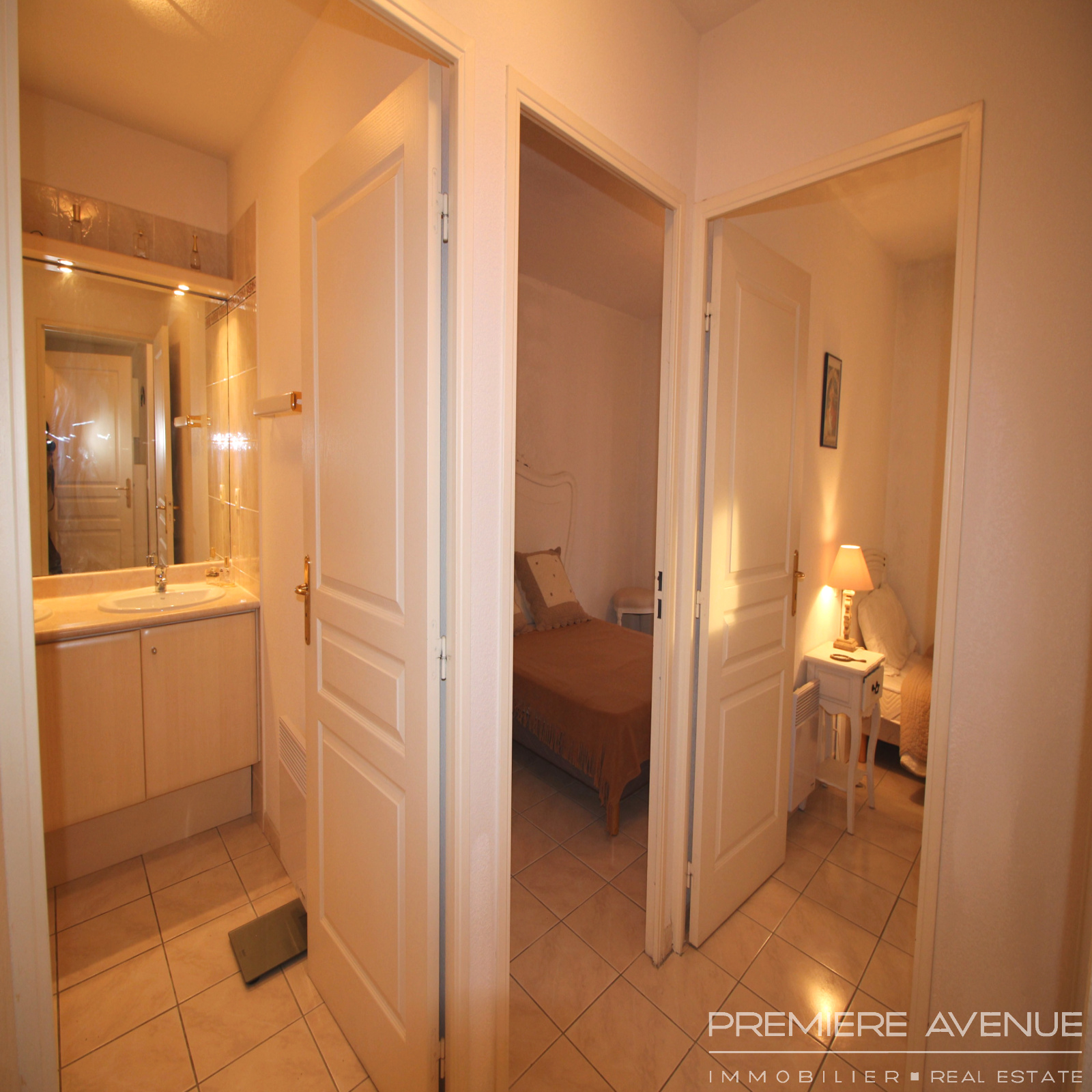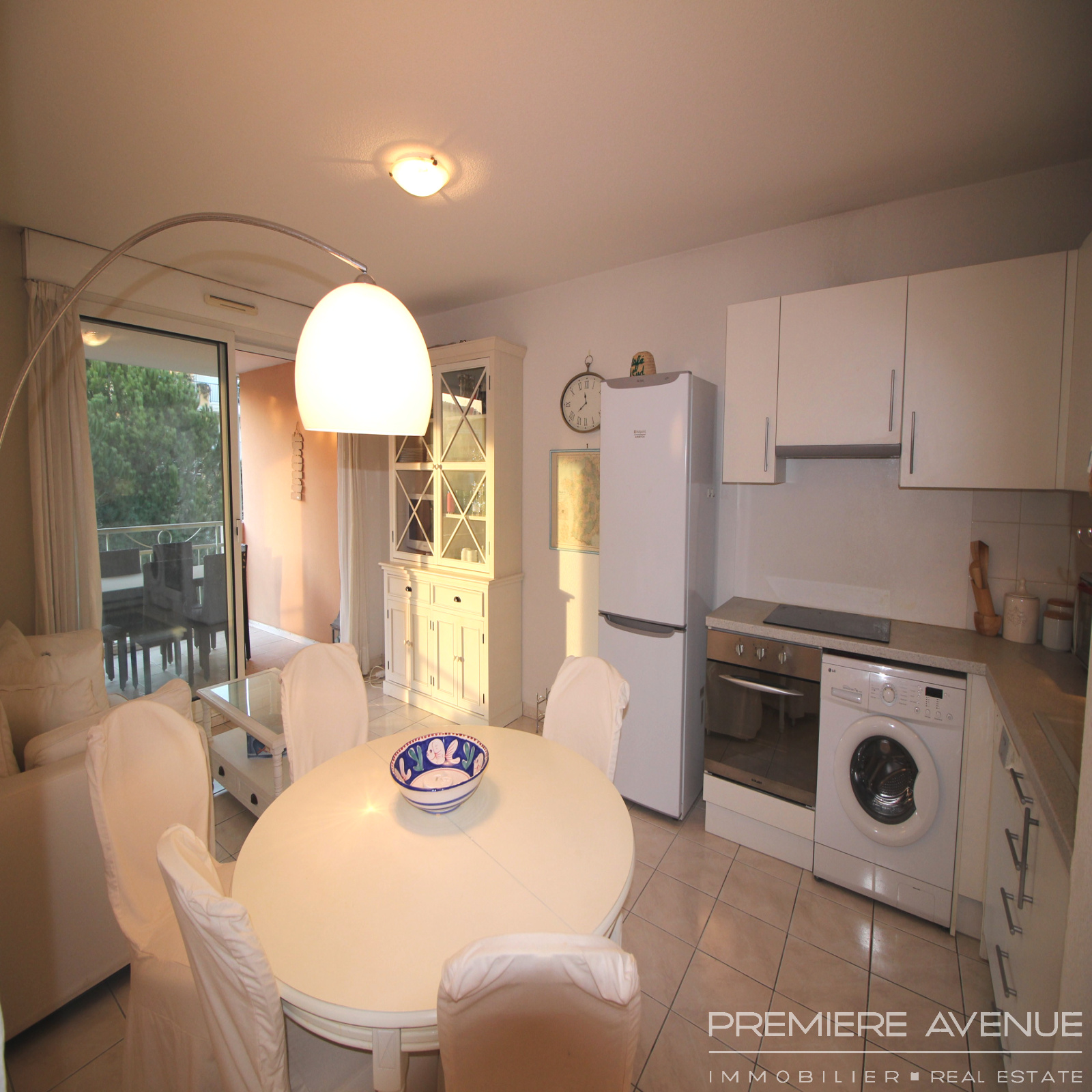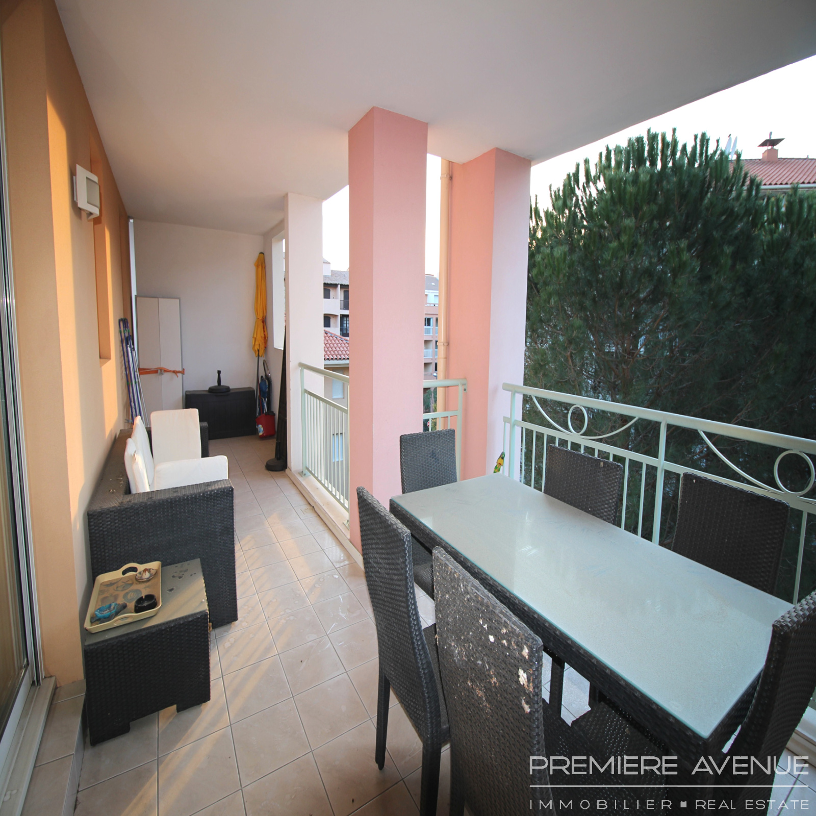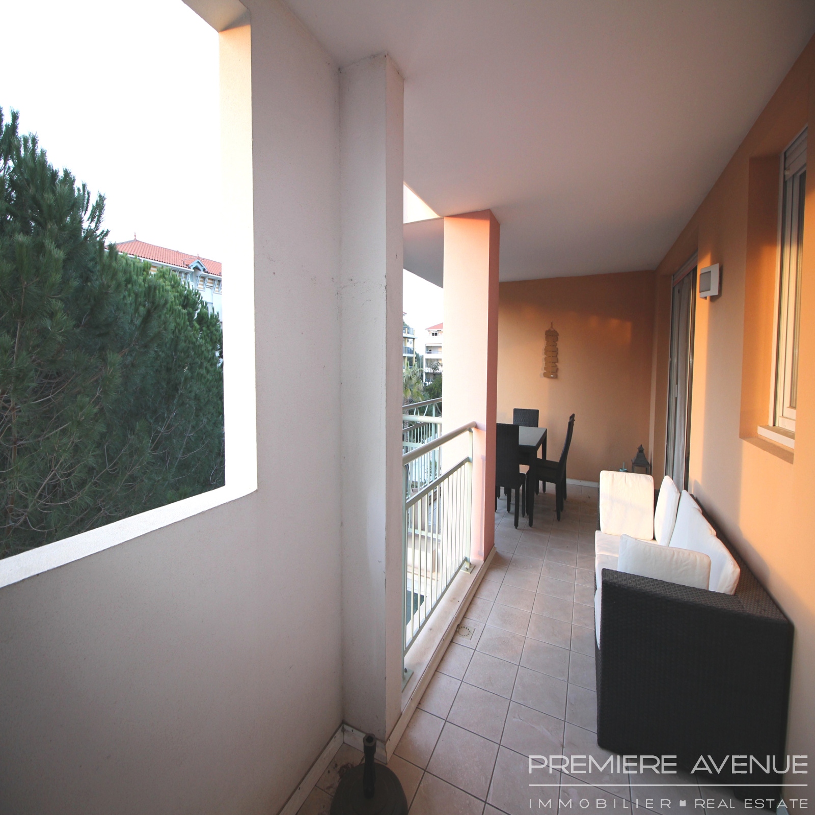 Appartement de 47 M² environ en étage élevé avec ascenseur, avec superbe terrasse de 20 M² couverte et exposée Ouest avec une superbe vue sur les pins parasols.