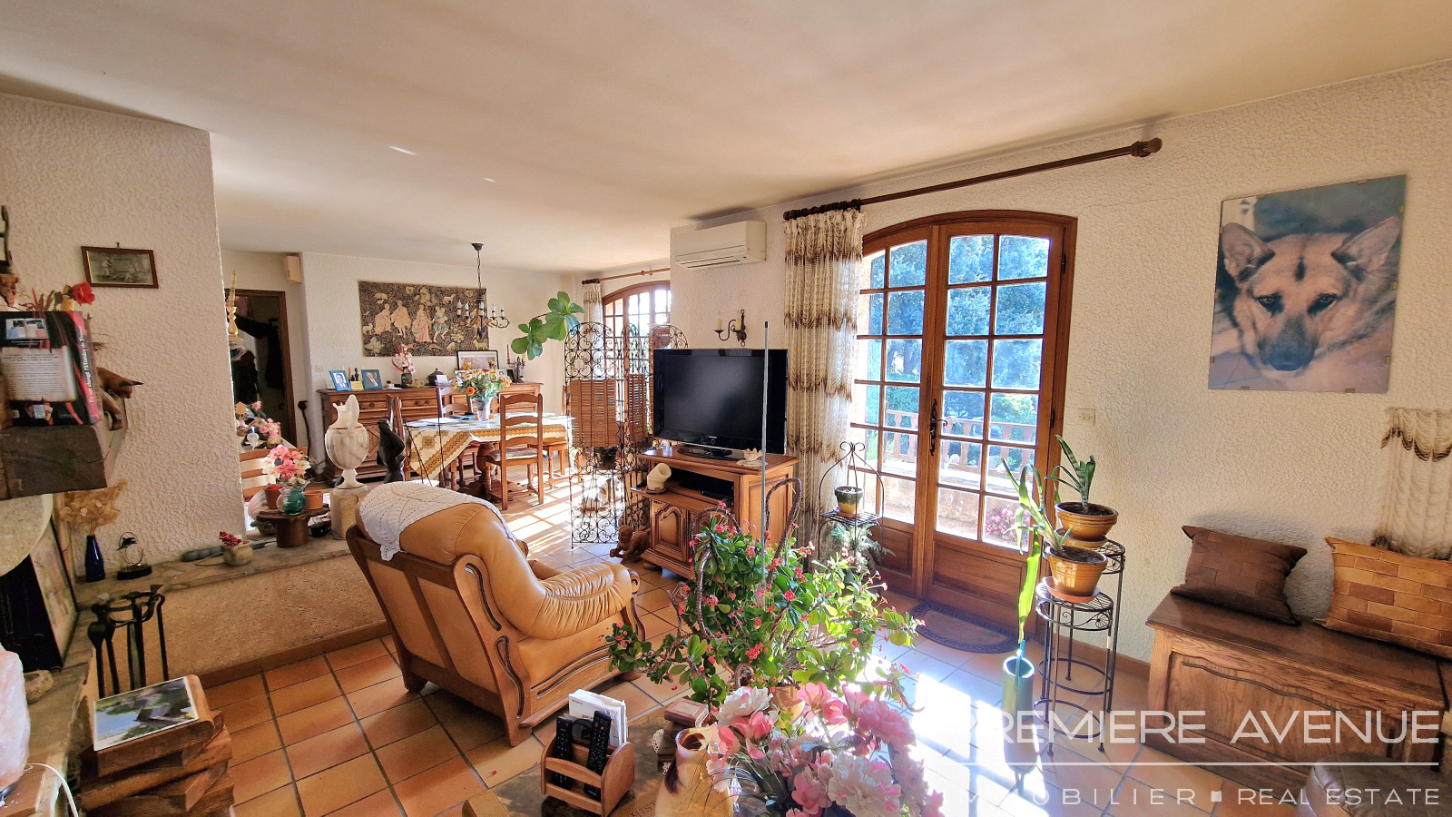 Le séjour lumineux orienté sud d’environ 36 m² bénéficie d’un aperçu mer, tandis que les quatre chambres, dont deux à l’étage avec vue mer, assurent un confort optimal.